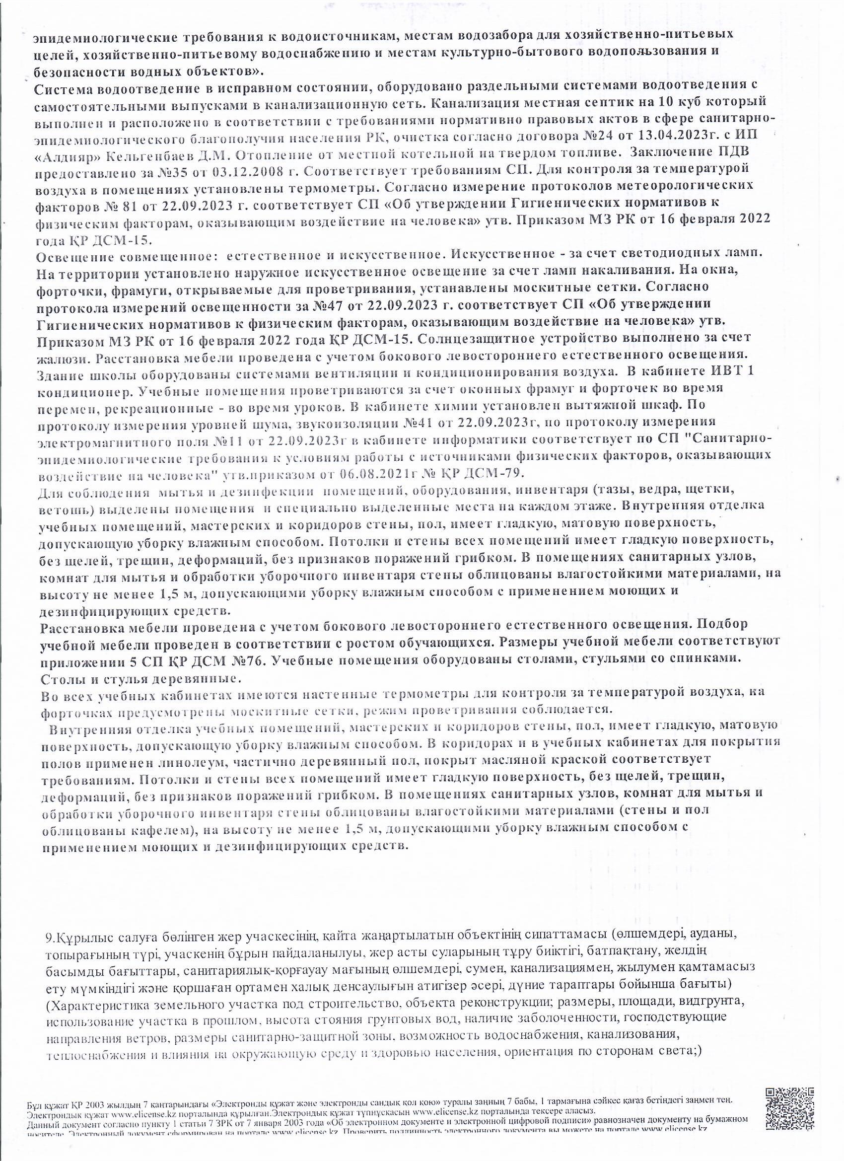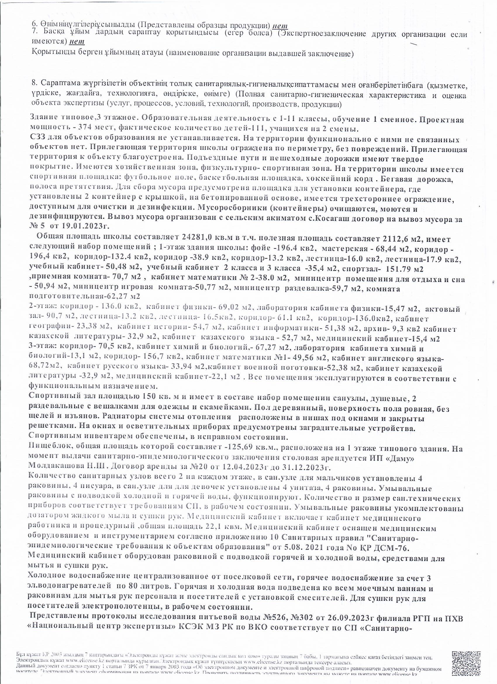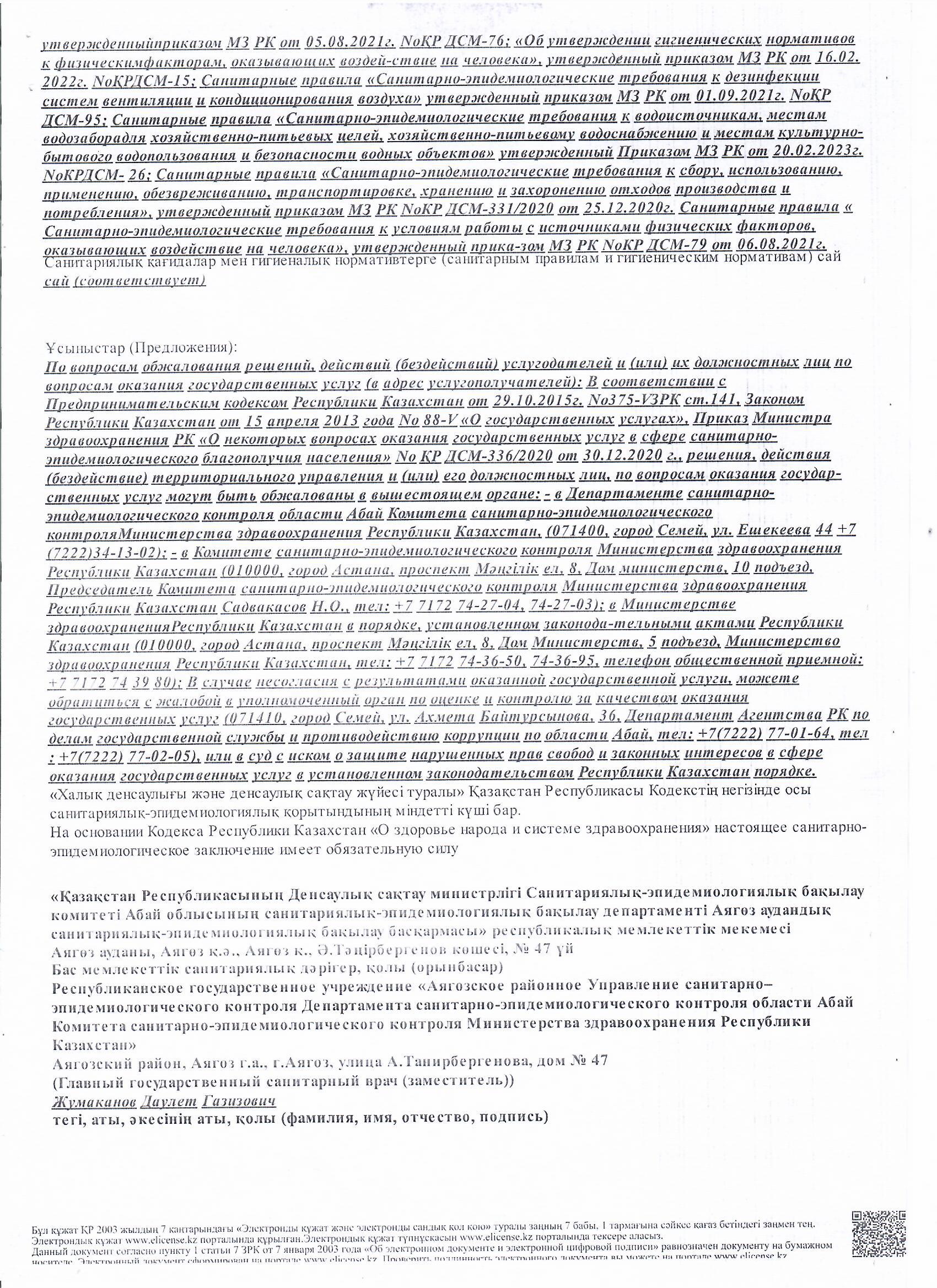 Тамақтану объектісіне санитарлық-эпидемиологиялық қорытынды