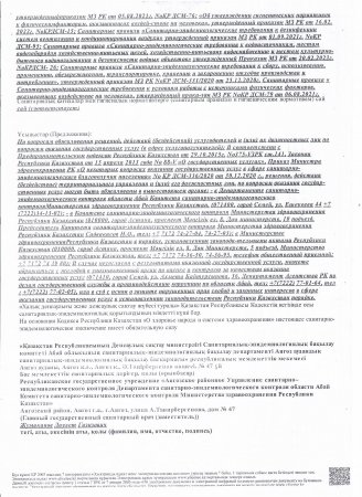 » Тамақтану объектісіне санитарлық-эпидемиологиялық қорытынды