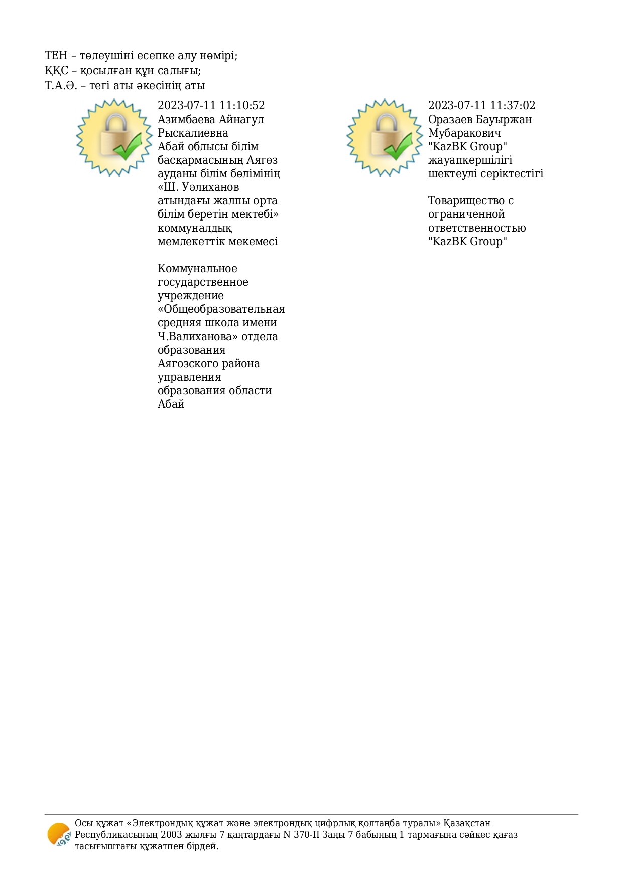 Абай облысы білім басқармасының Аягөз ауданы білім бөлімінің «Ш. Уәлиханов атындағы жалпы орта білім беретін мектебі»