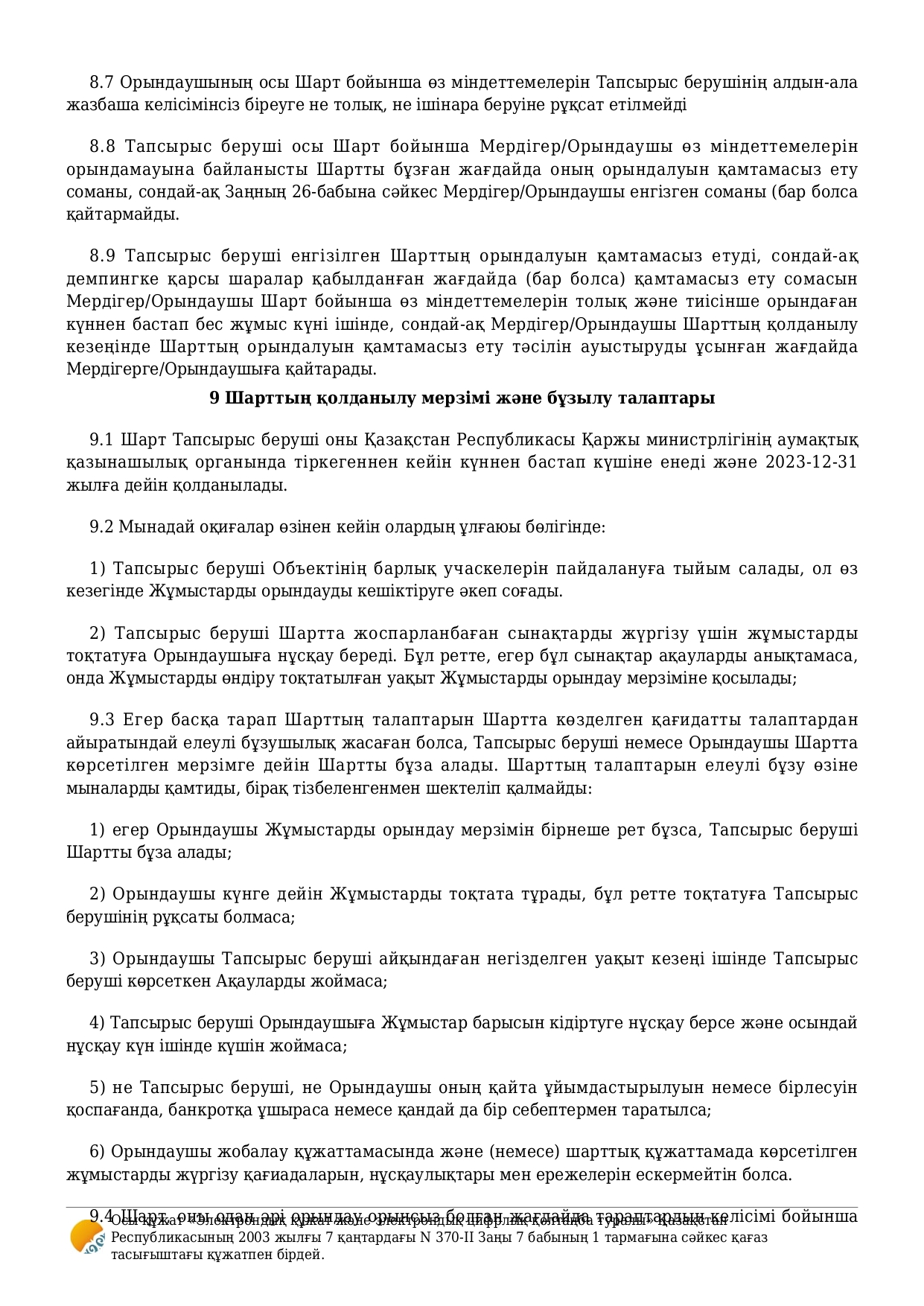 » Бейнебақылау жүйесіне техникалық қызмет көрсету келісімшарты