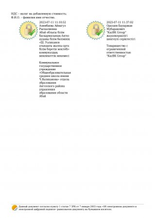 Мектепке дейінгі тәрбие мен оқыту уйымының құжаты