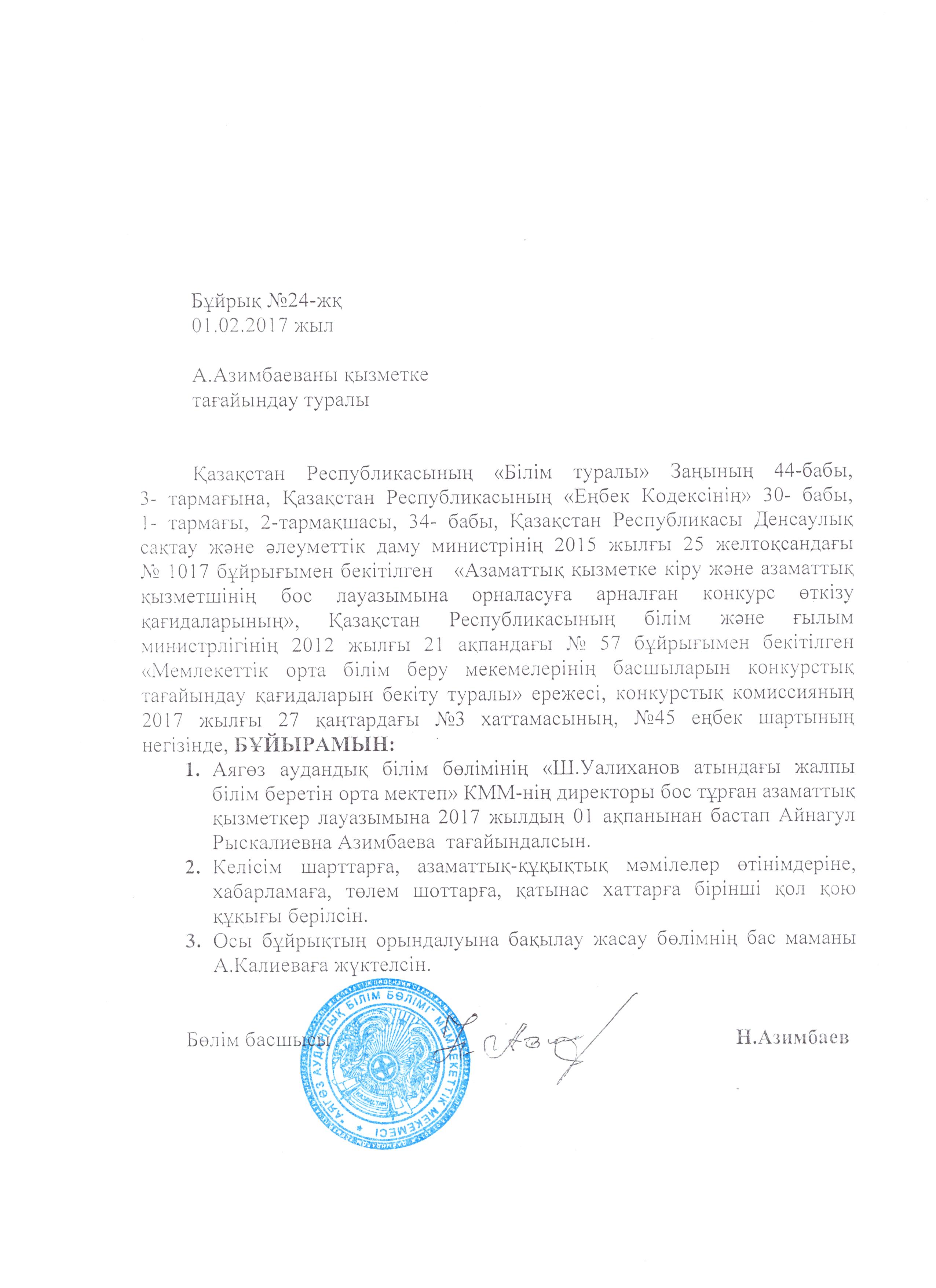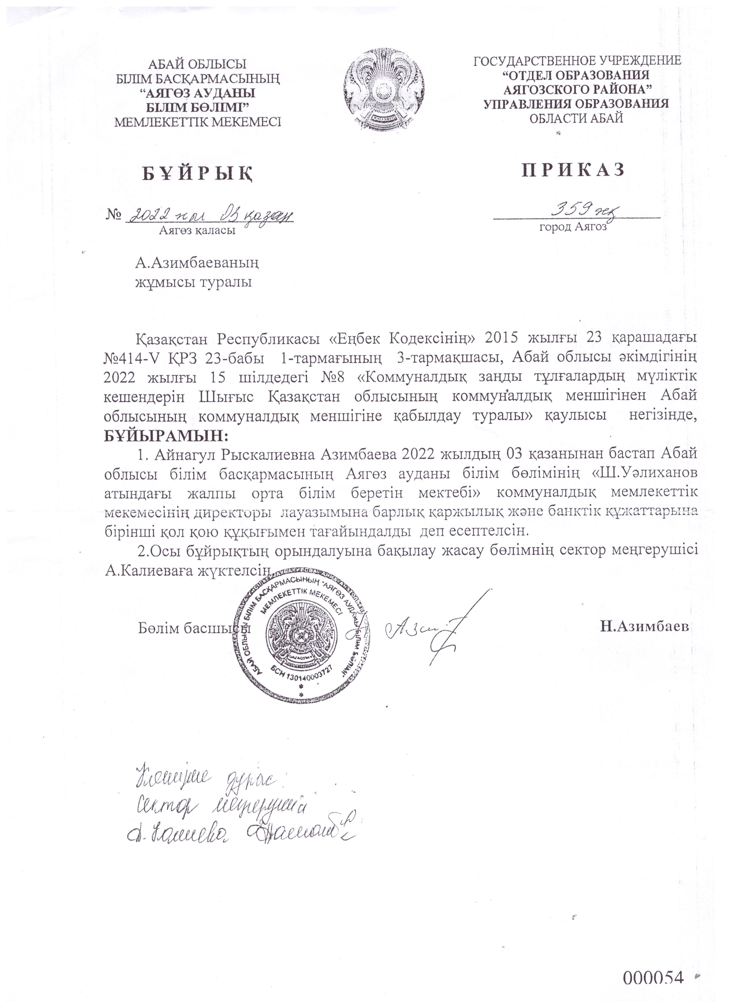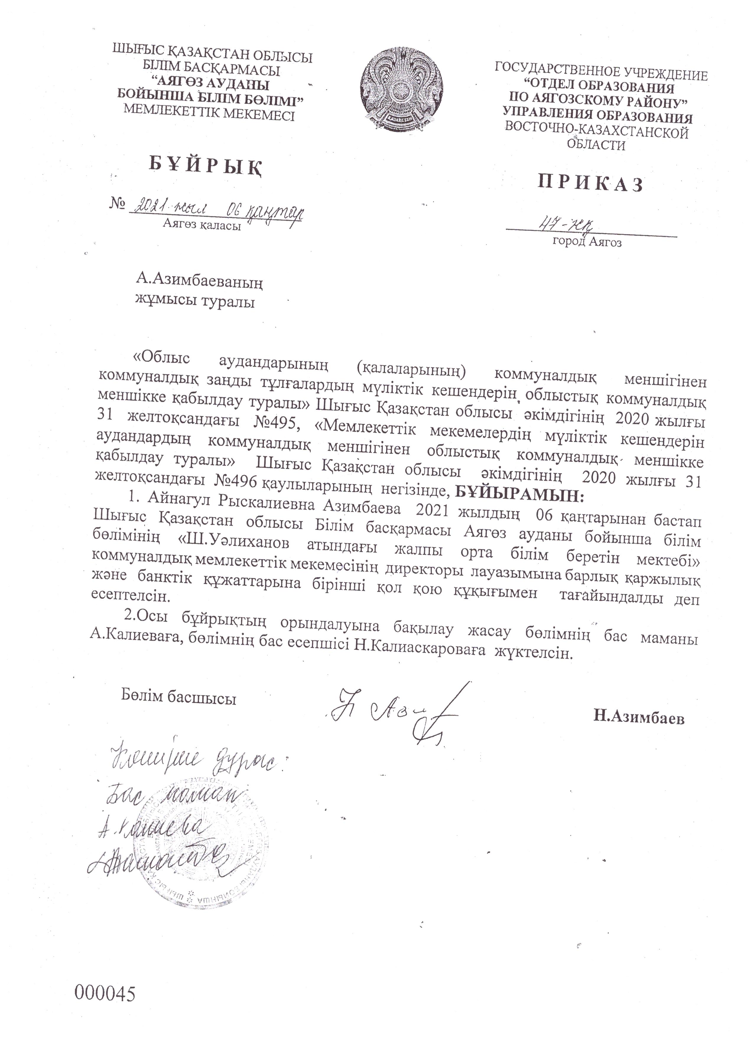 Абай облысы білім басқармасының Аягөз ауданы білім бөлімінің «Ш. Уәлиханов атындағы жалпы орта білім беретін мектебі»