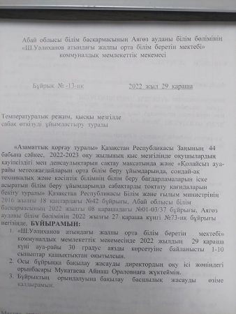 » Температуралық режим, қысқы мезгілде сабақ өткізуді ұйымдастыру