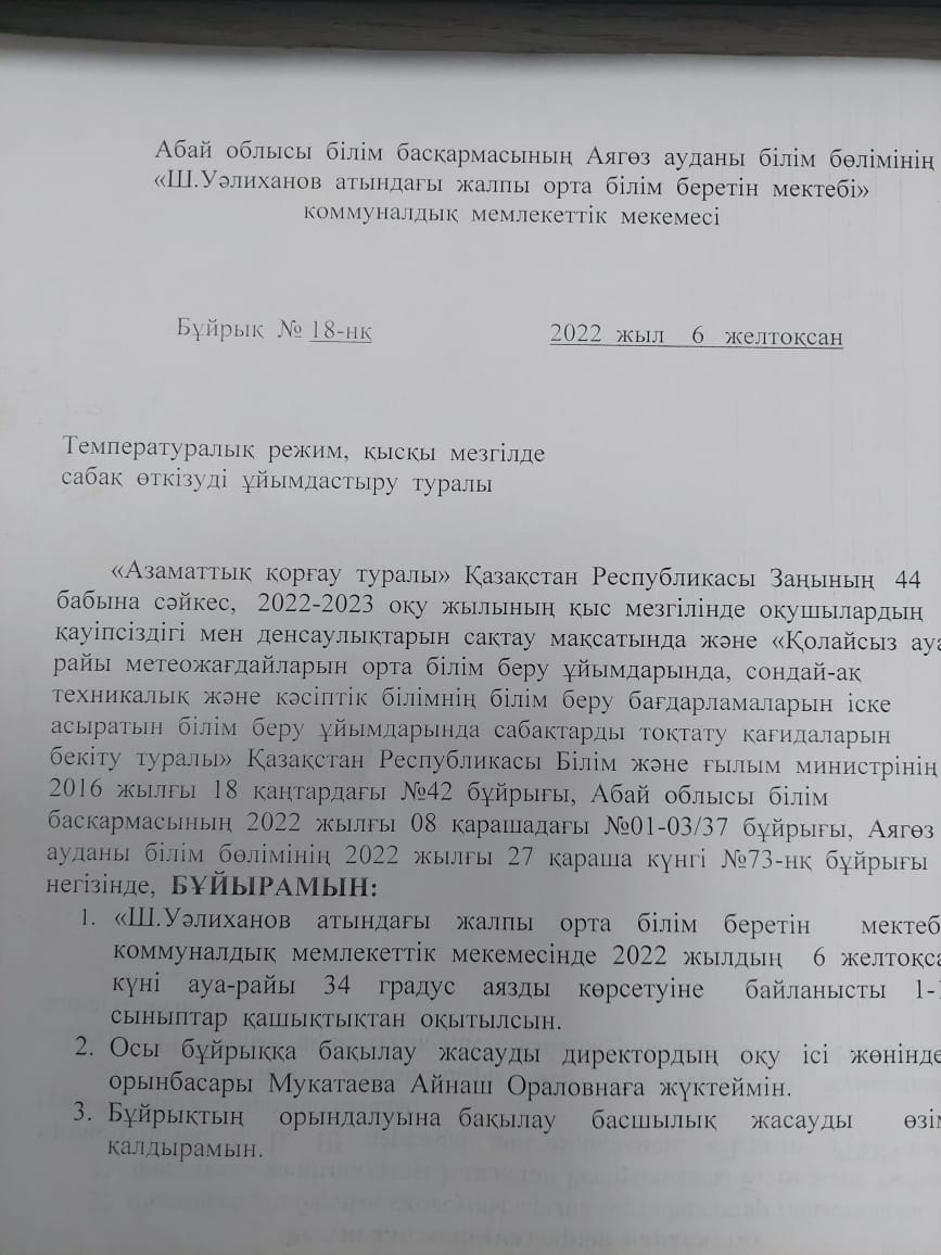 Абай облысы білім басқармасының Аягөз ауданы білім бөлімінің «Ш. Уәлиханов атындағы жалпы орта білім беретін мектебі»
