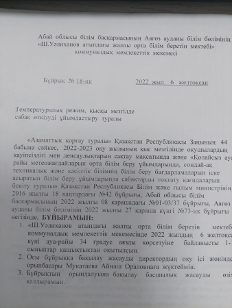 » Температуралық режим, қысқы мезгілде сабақ өткізуді ұйымдастыру