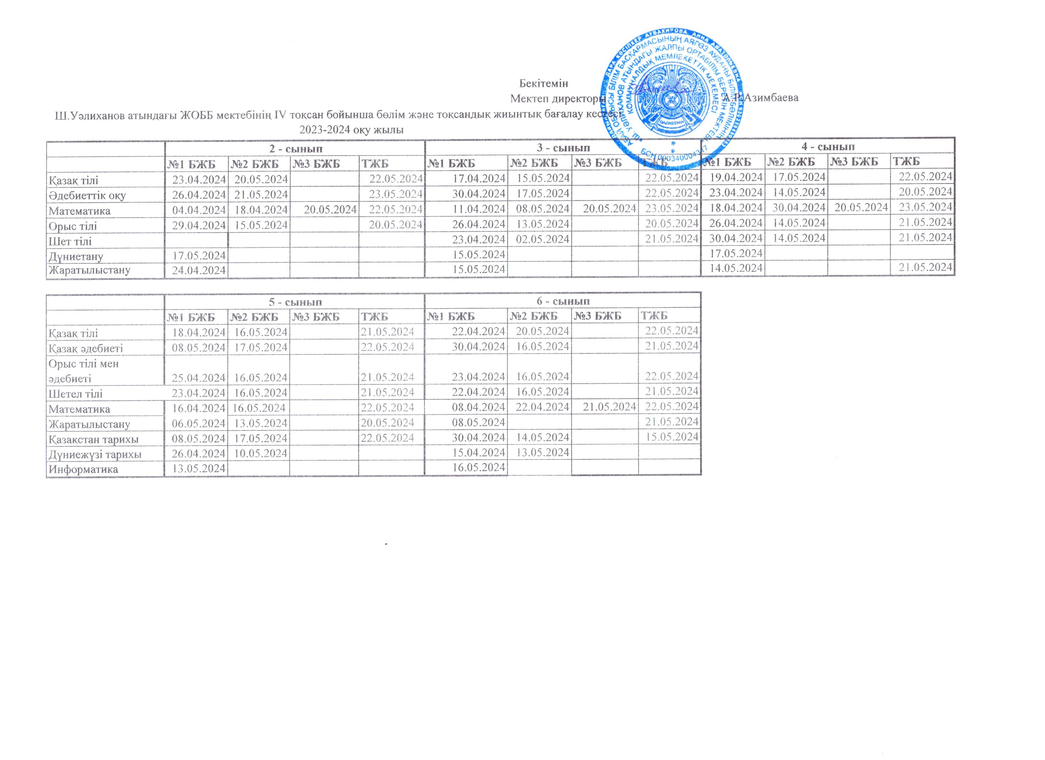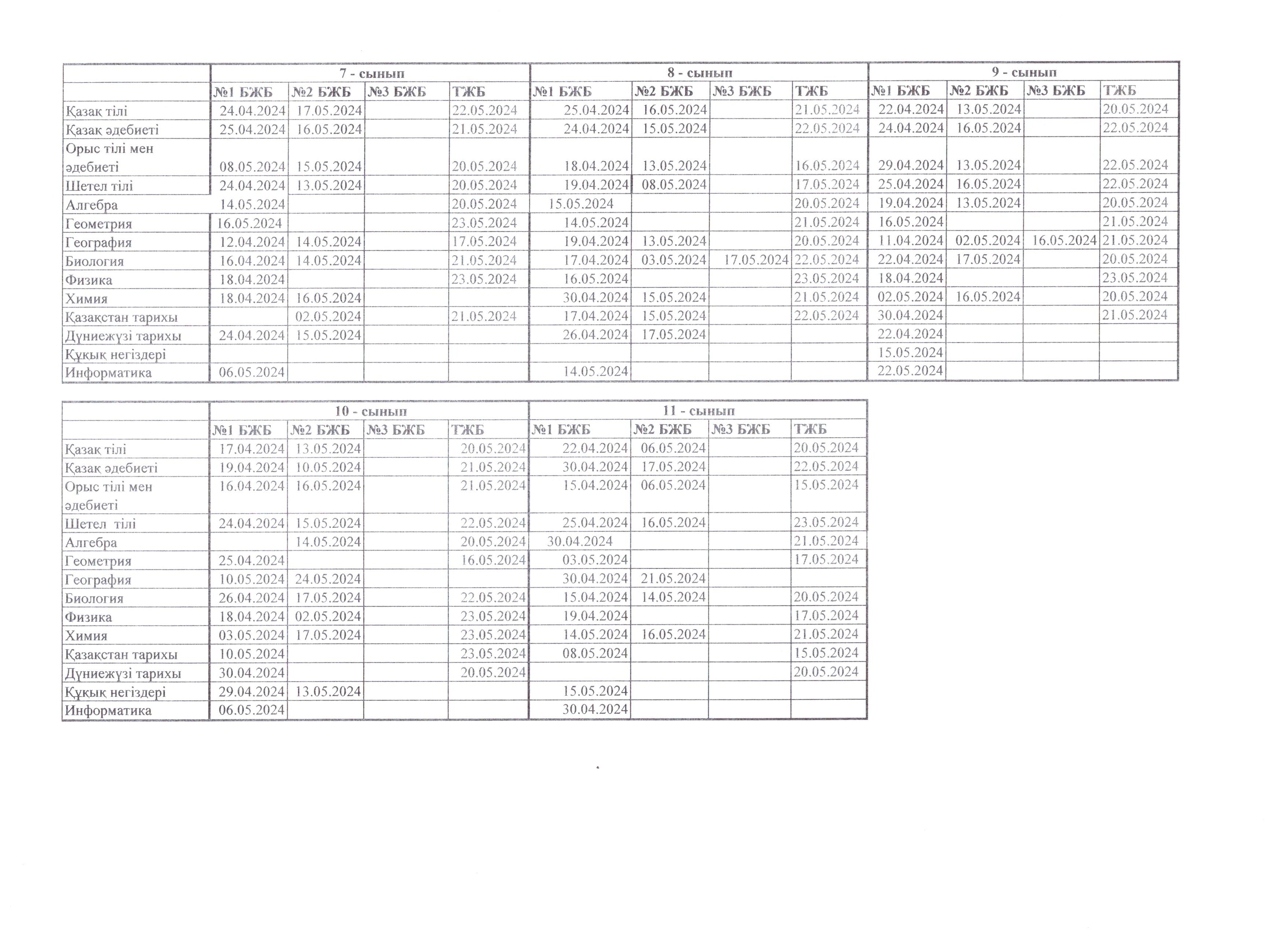 » 2023-2024 оқу жылының IV тоқсан бойынша БЖБ ТЖБ кестесі