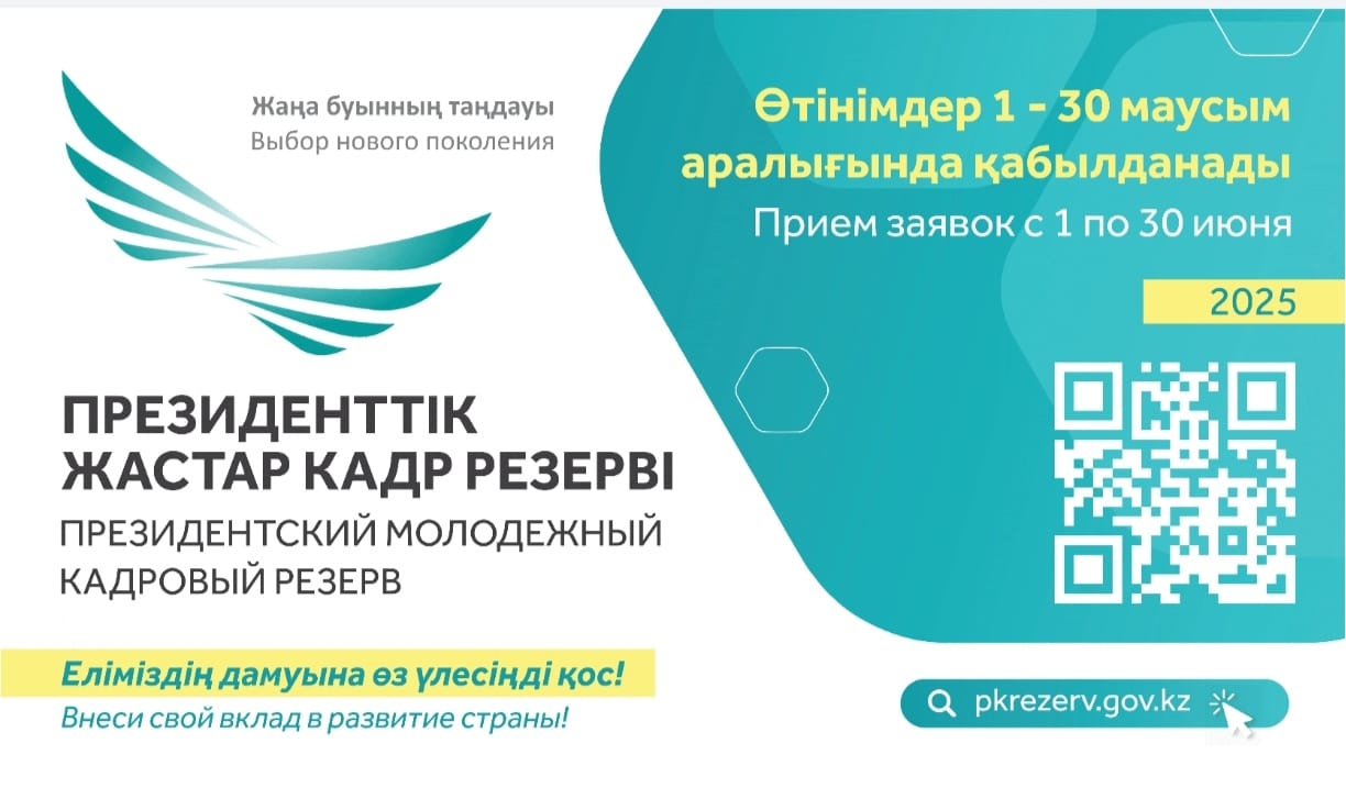 🇰🇿 Жалынды жастарды елге қызмет етудің озық үлгісін көрсету үшін «Президенттік жастар кадр резерві» жобасына белсене қатысуға шақырамыз. Еліміздің дамуына өз үлесінді қос!
