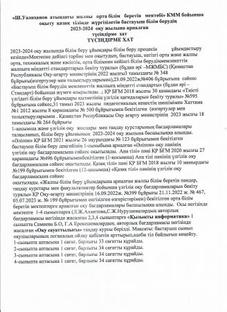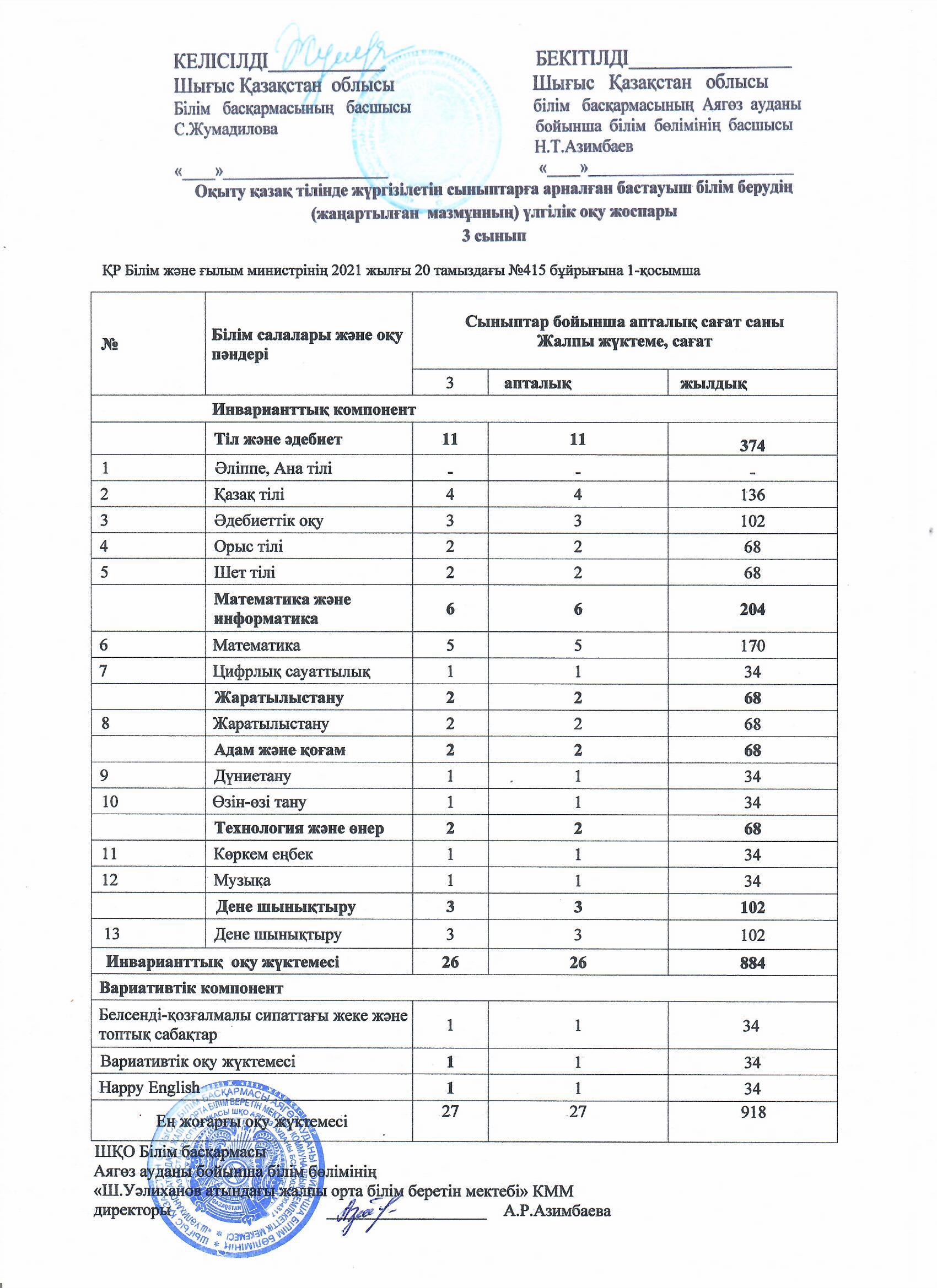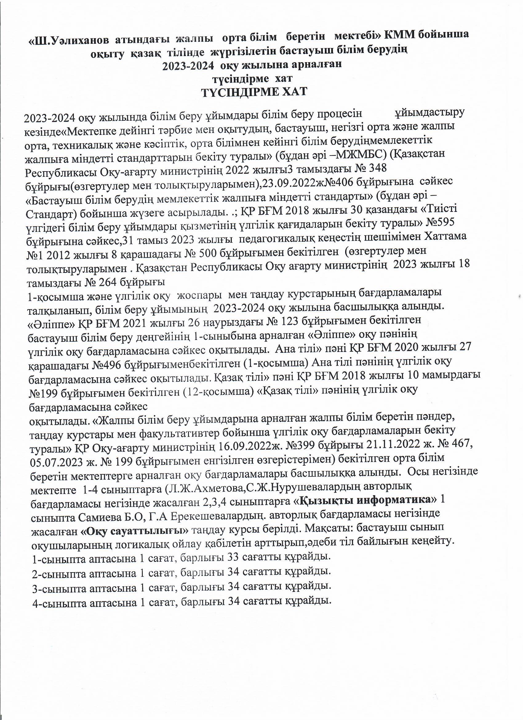 » Түсіндірме хат, 3 сынып оқу жоспар