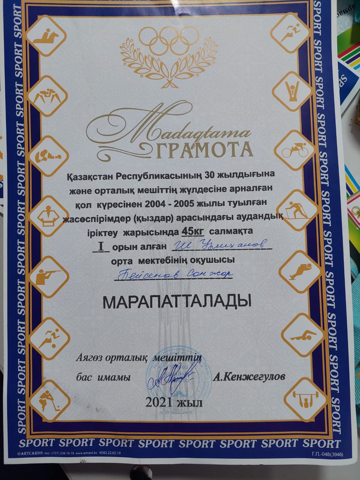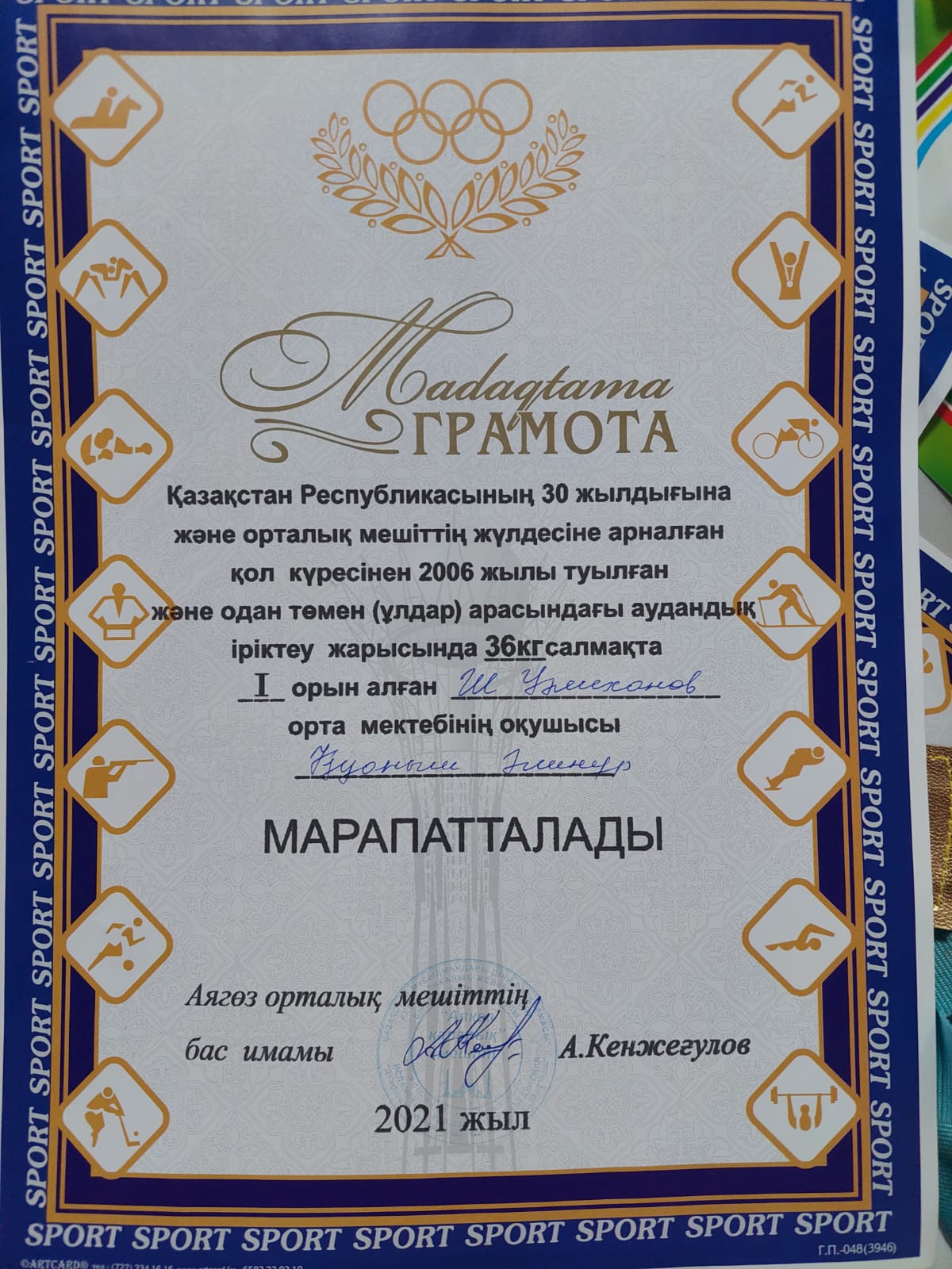 2021 жылдың 3-4 желтоқсан аралығында аудандық білім бөлімінің ұйымдастыруымен, Аягөз орталық мешітінің қолдауымен 《Д.Бабатайұлы атындағы жалпы білім беретін орта мектебі》ҚММ-де Қазақстан Республикасы Тәуелсіздігінің 30 жылдығына және Аягөз орталық мешітінің жүлдесіне арналған 2004-2005 ж.т,2006 ж.т және одан төмен жастағы жасөспірімдер арасында қол күресі жарысы өткізілді.