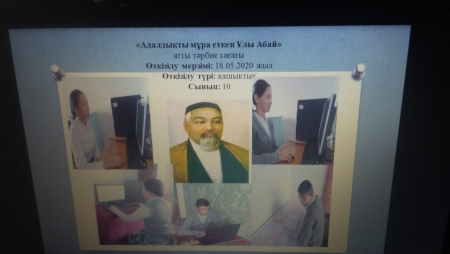 Мектебімізде 10-сынып оқушыларымен онлайн режимінде "Адалдықты мұра еткен Ұлы Абай " атты тәрбие сағаты өтті.