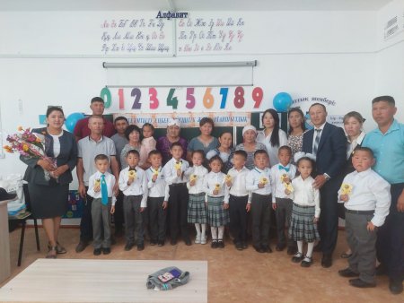лентасын тақты. Жиынға ауыл әкімі Н.Б Сегізбаев қатысып, алғаш мектеп табалдырығын