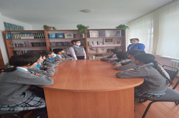 Мектеп кітапханашысы Ерубаева Гулжан Аменовна 5-8 сынып оқушыларымен