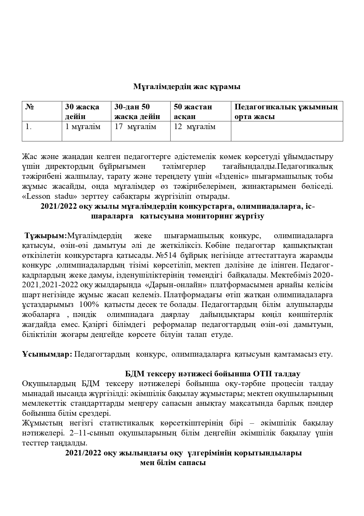 ТӘРБИЕ ЖҰМЫСЫНЫҢ ТАЛДАУЫ