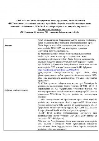 Мектепке дейінгі тәрбие мен оқыту уйымының құжаты