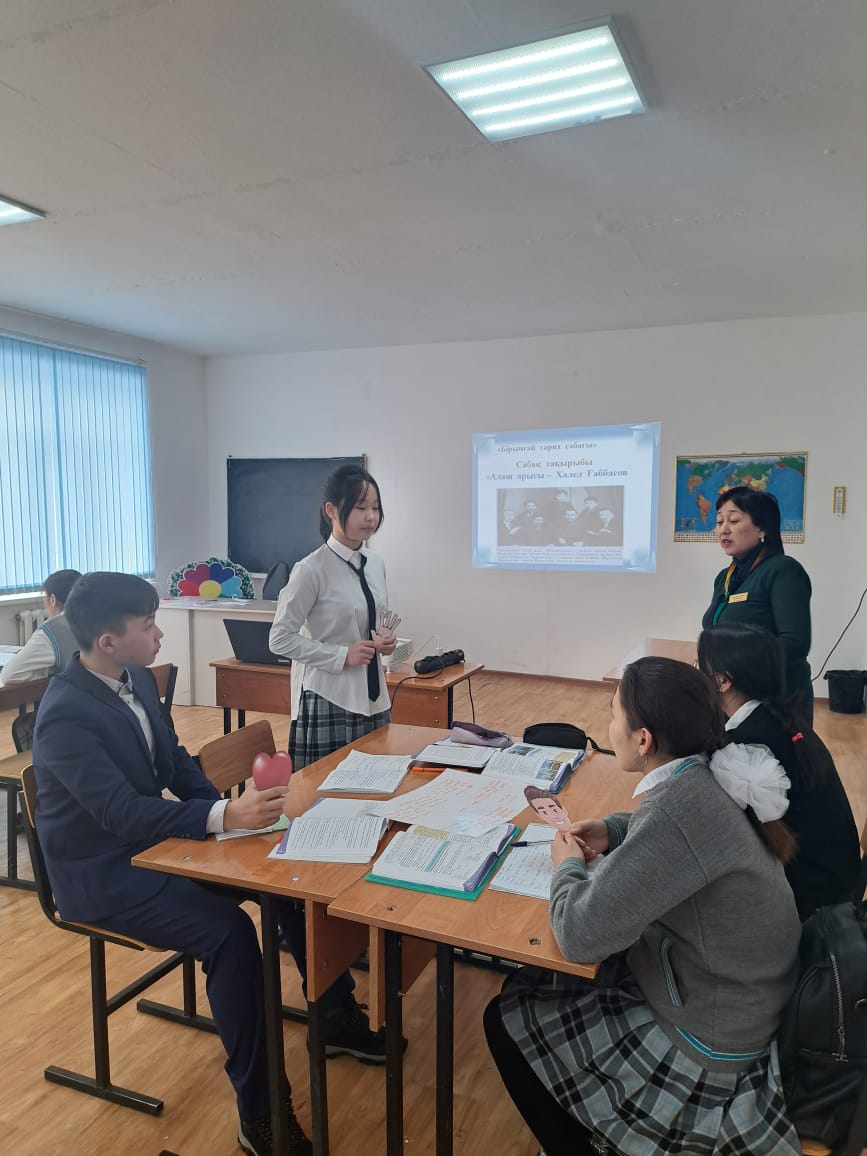 Сабақ барысында оқушылар Алаш арысы Халел Ғаббасовтың