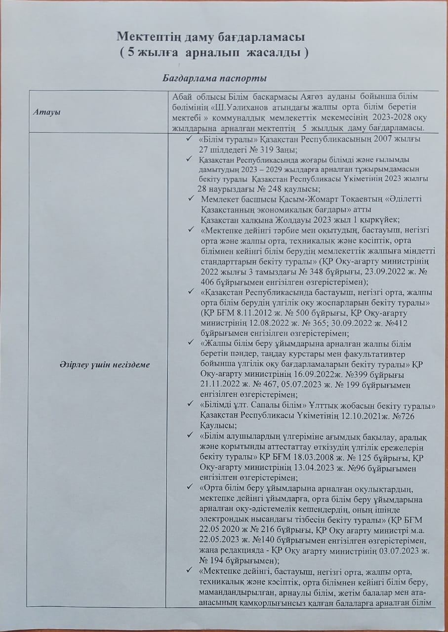 Абай облысы білім басқармасының Аягөз ауданы білім бөлімінің «Ш. Уәлиханов атындағы жалпы орта білім беретін мектебі»