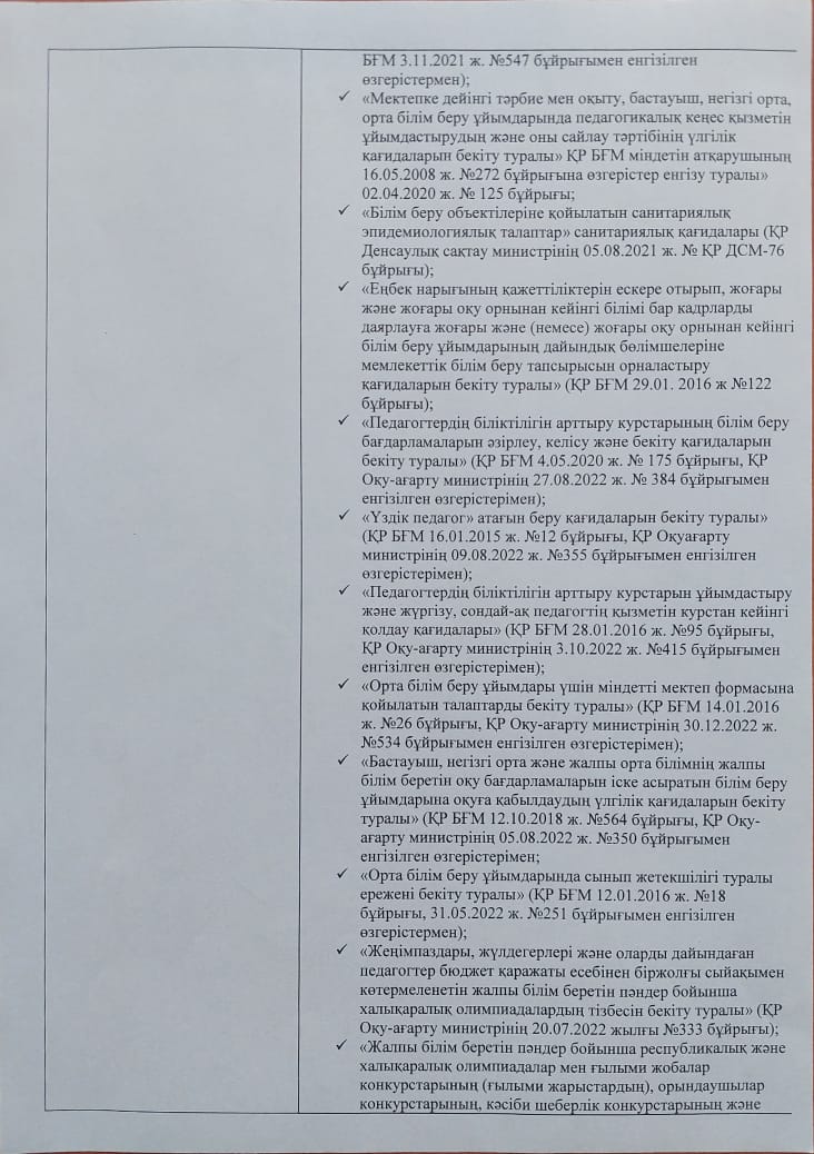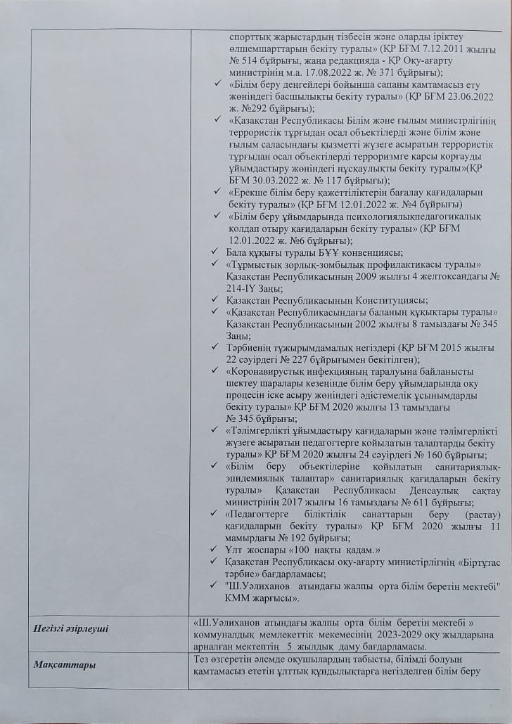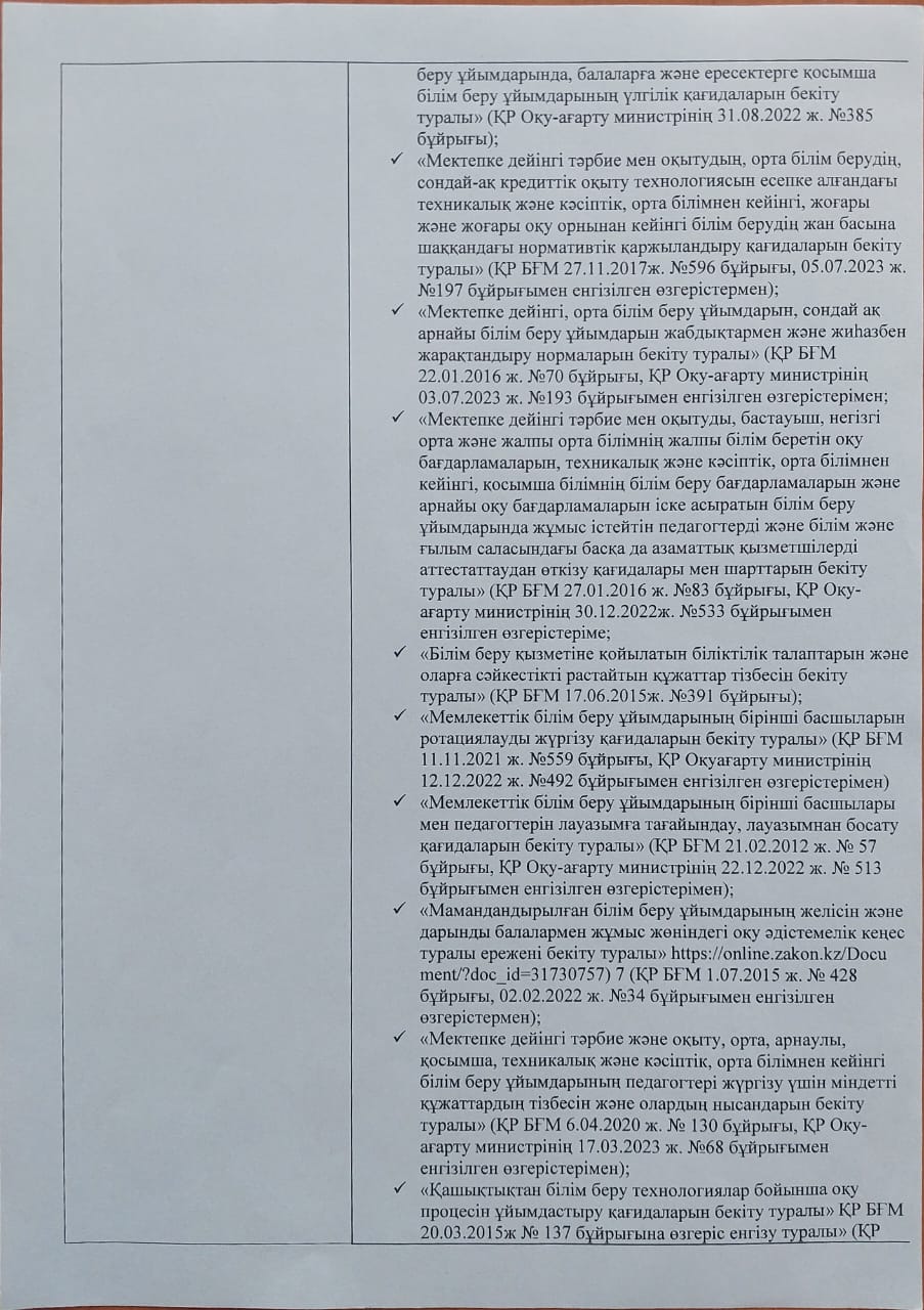 Мектепке дейінгі тәрбие мен оқыту уйымының құжаты