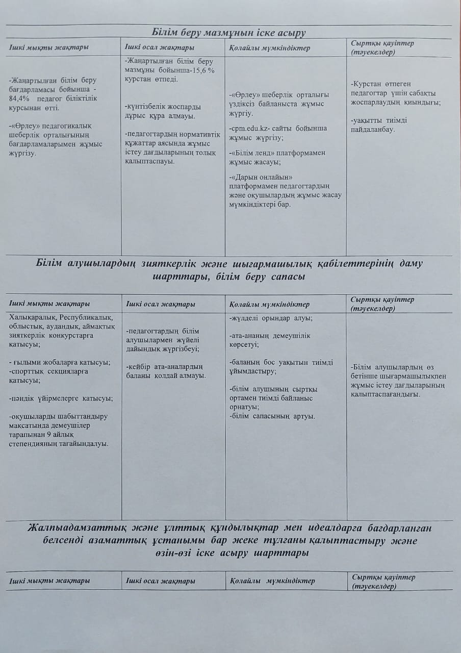 ТӘРБИЕ ЖҰМЫСЫНЫҢ ТАЛДАУЫ