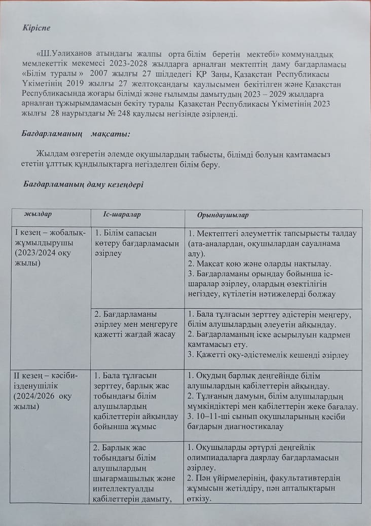 » Даму жоспары 2023-2024 оқу жылы