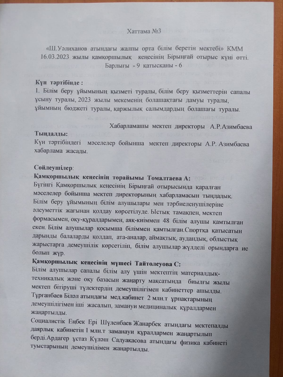 2023 жылғы 16 наурызда Қамқоршылық кеңес отырысының Бірыңғай күні өтті.