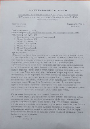 Мектепке дейінгі тәрбие мен оқыту уйымының құжаты