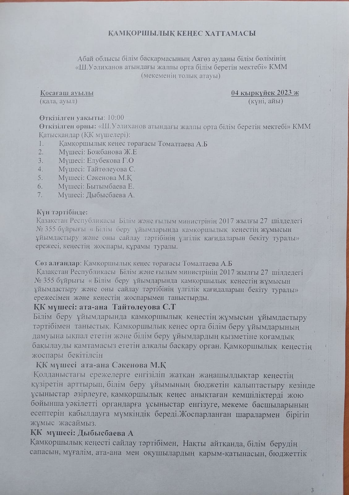 Абай облысы білім басқармасының Аягөз ауданы білім бөлімінің «Ш. Уәлиханов атындағы жалпы орта білім беретін мектебі»