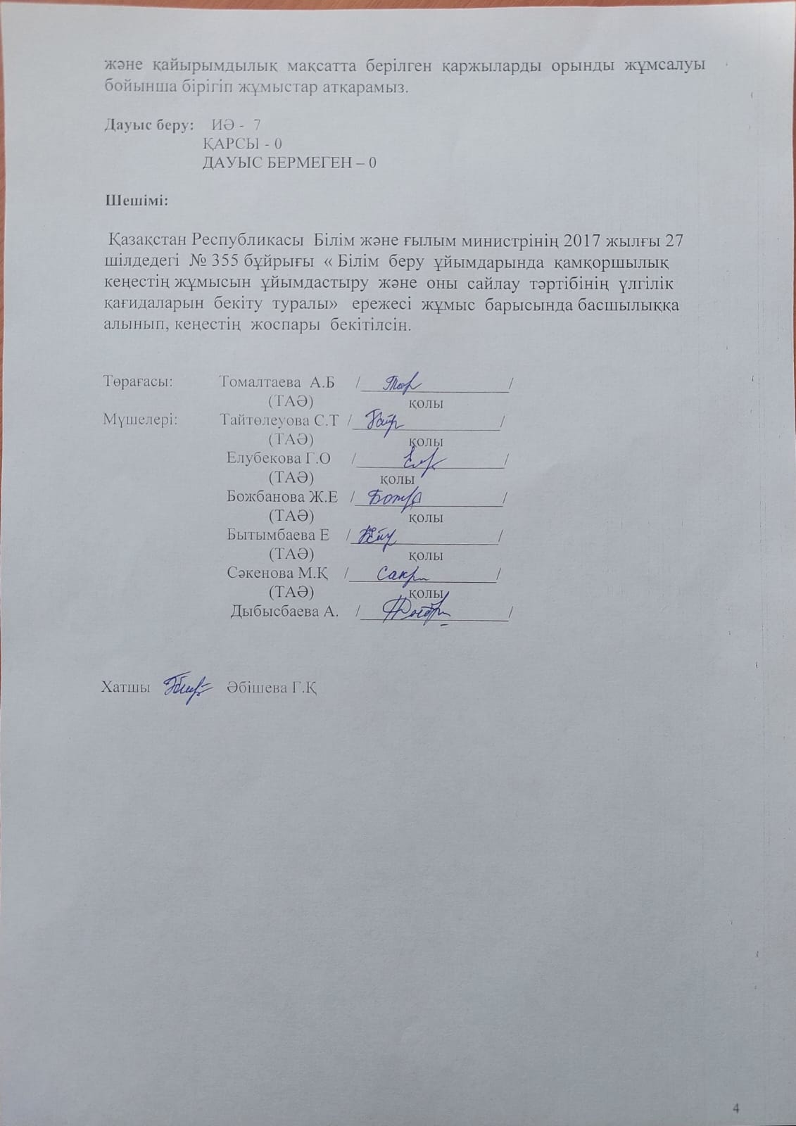 Мектепке дейінгі тәрбие мен оқыту уйымының құжаты