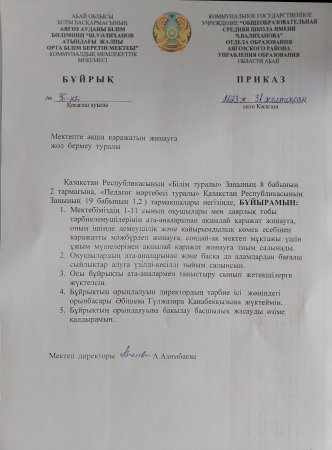 » Мектепте ақша қаражатын жинауға жол бермеу туралы бұйрық