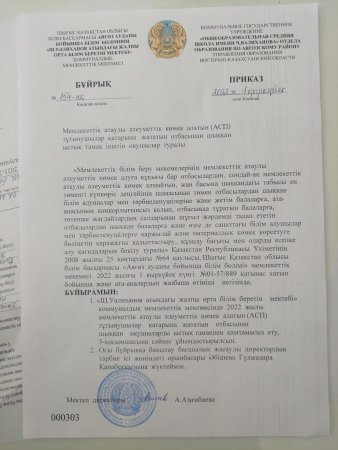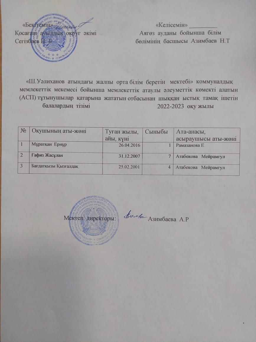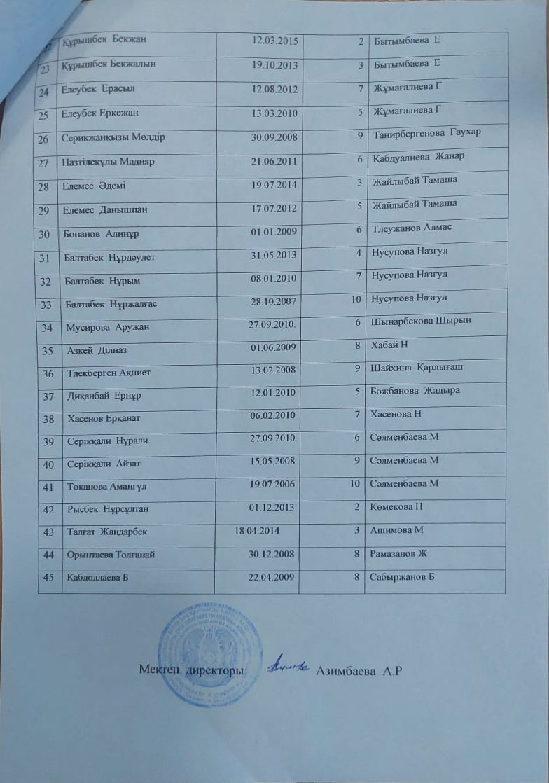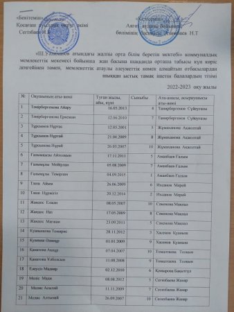 Ыстық тамақ ішетін оқушылардың тізімі, бұйрық, фота