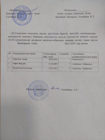 Абай облысы білім басқармасының Аягөз ауданы білім бөлімінің «Ш. Уәлиханов атындағы жалпы орта білім беретін мектебі»