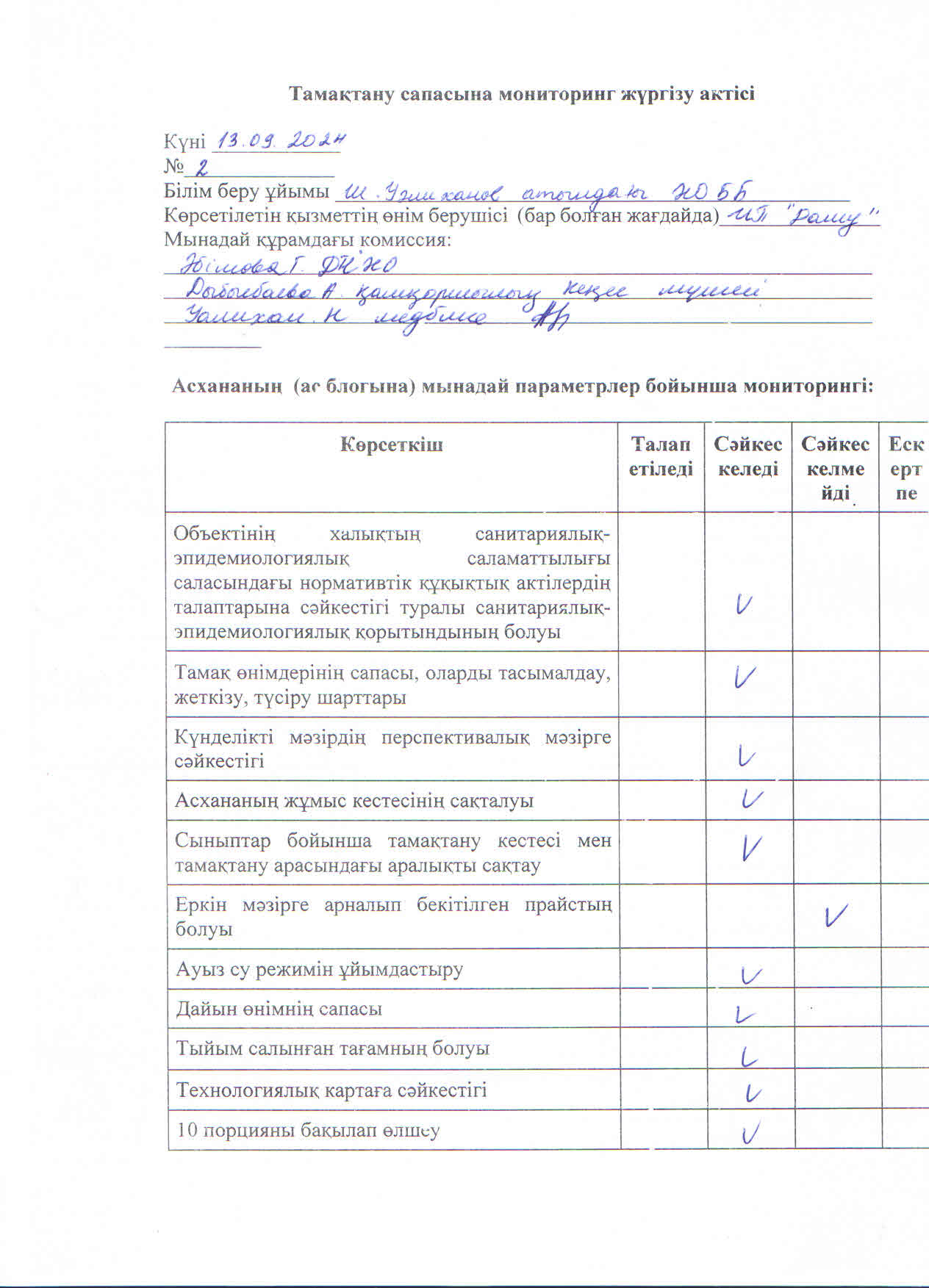 Бракераждық комиссия тамақтың сапасына мониторинг жүргізді.