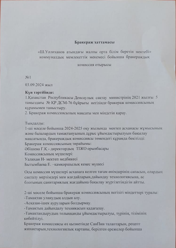 Мектепке дейінгі тәрбие мен оқыту уйымының құжаты