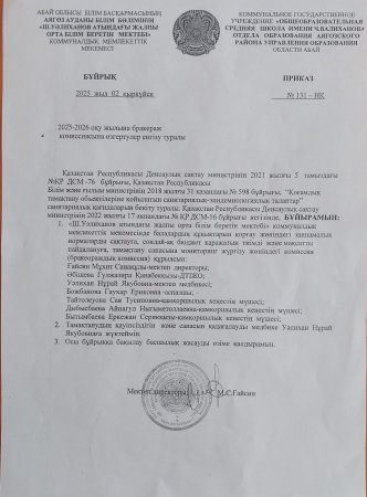 Бракераж комиссиясының бұйрығы