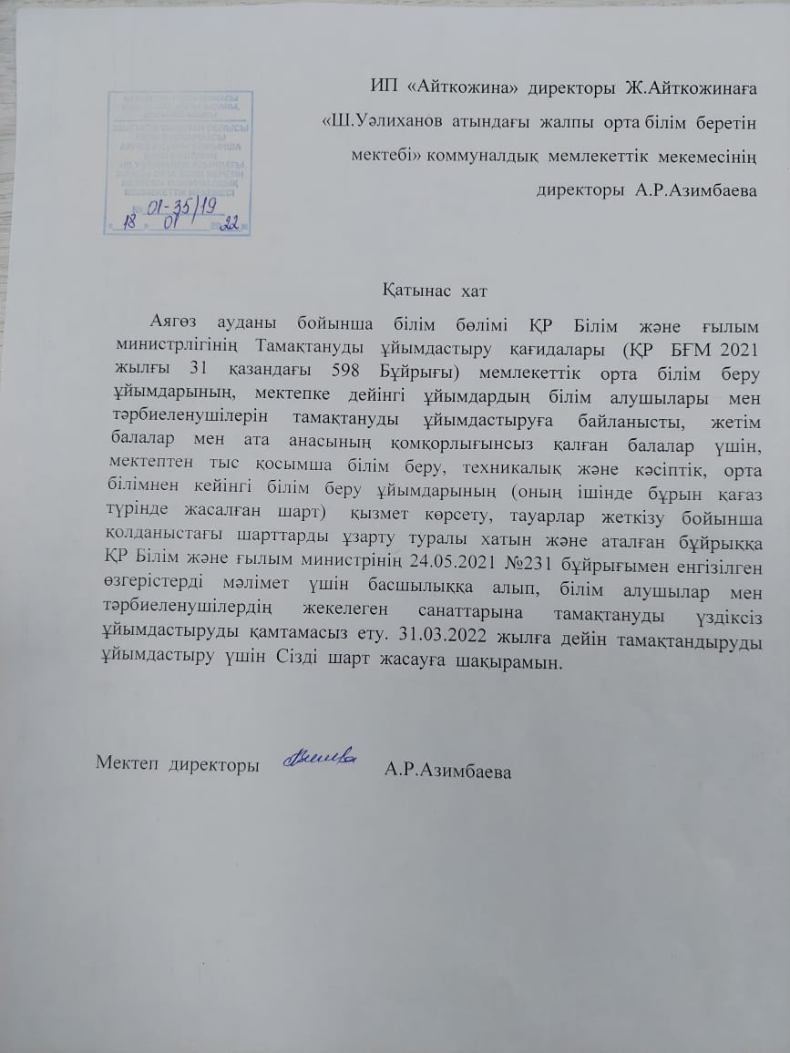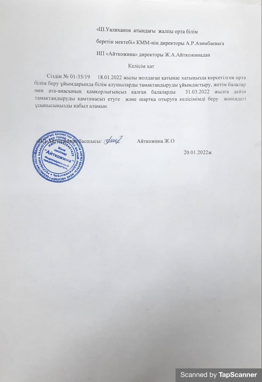 Тамақтандыруды ұйымдастыру ұшін шарт жасасу