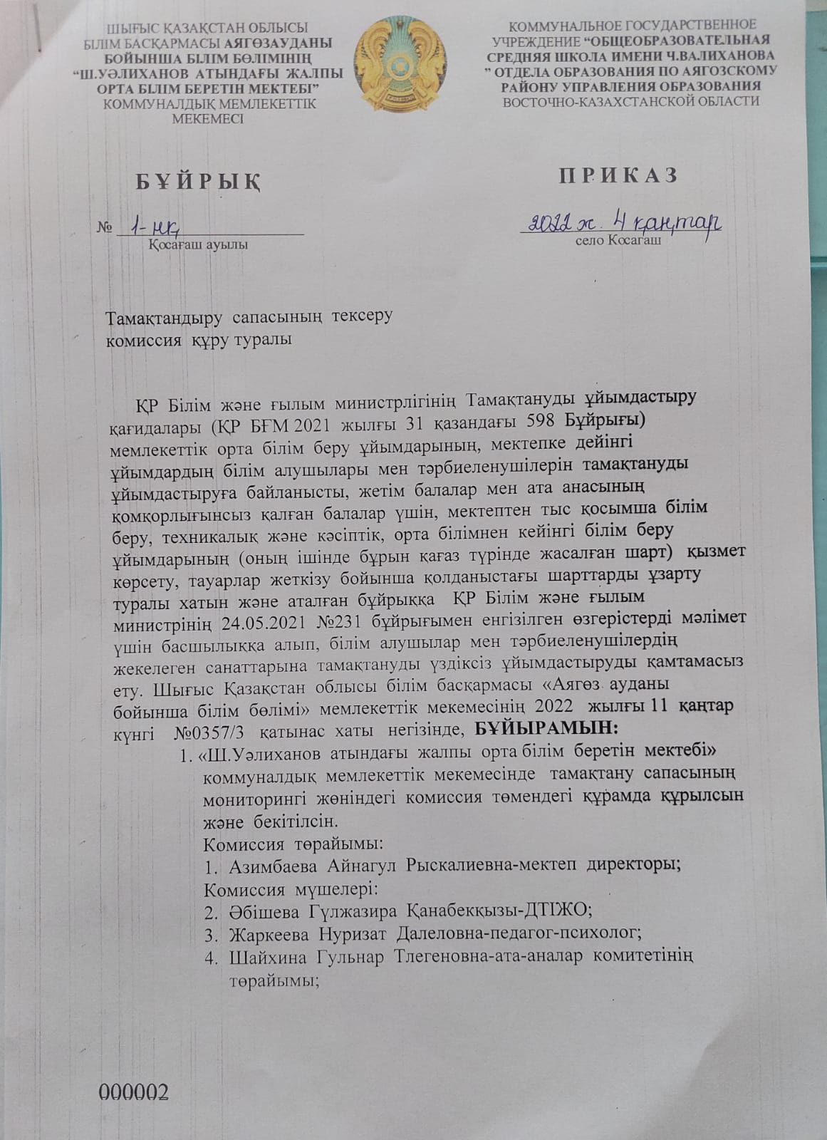 » Тамақтану сапасын мониторинг жөніндегі комиссия