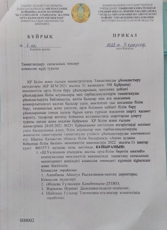 Мектепке дейінгі тәрбие мен оқыту уйымының құжаты