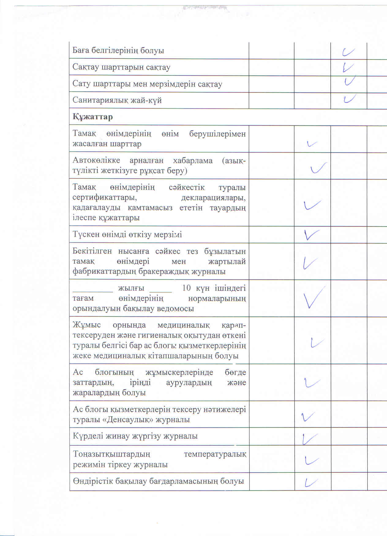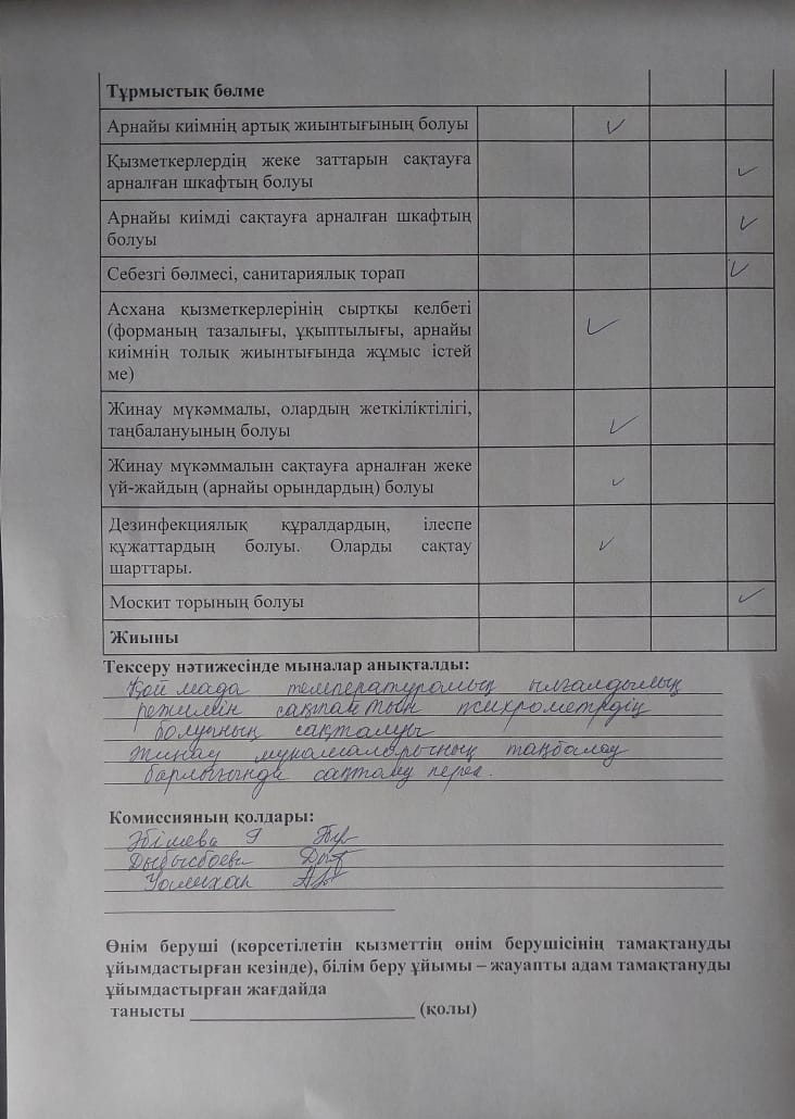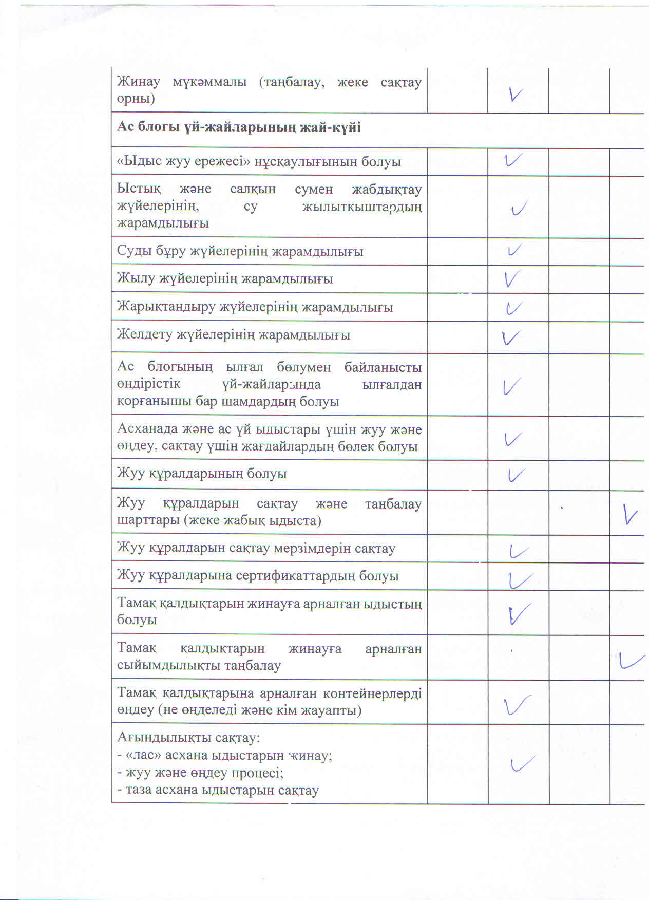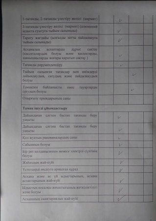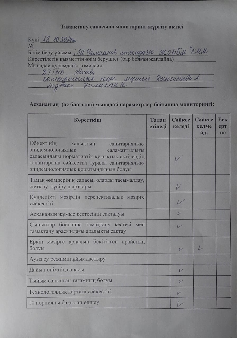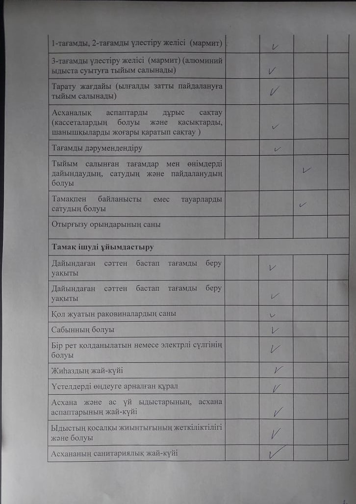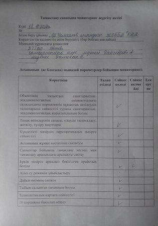 » Тамақтану сапасын мониторинг жүргізу актісі