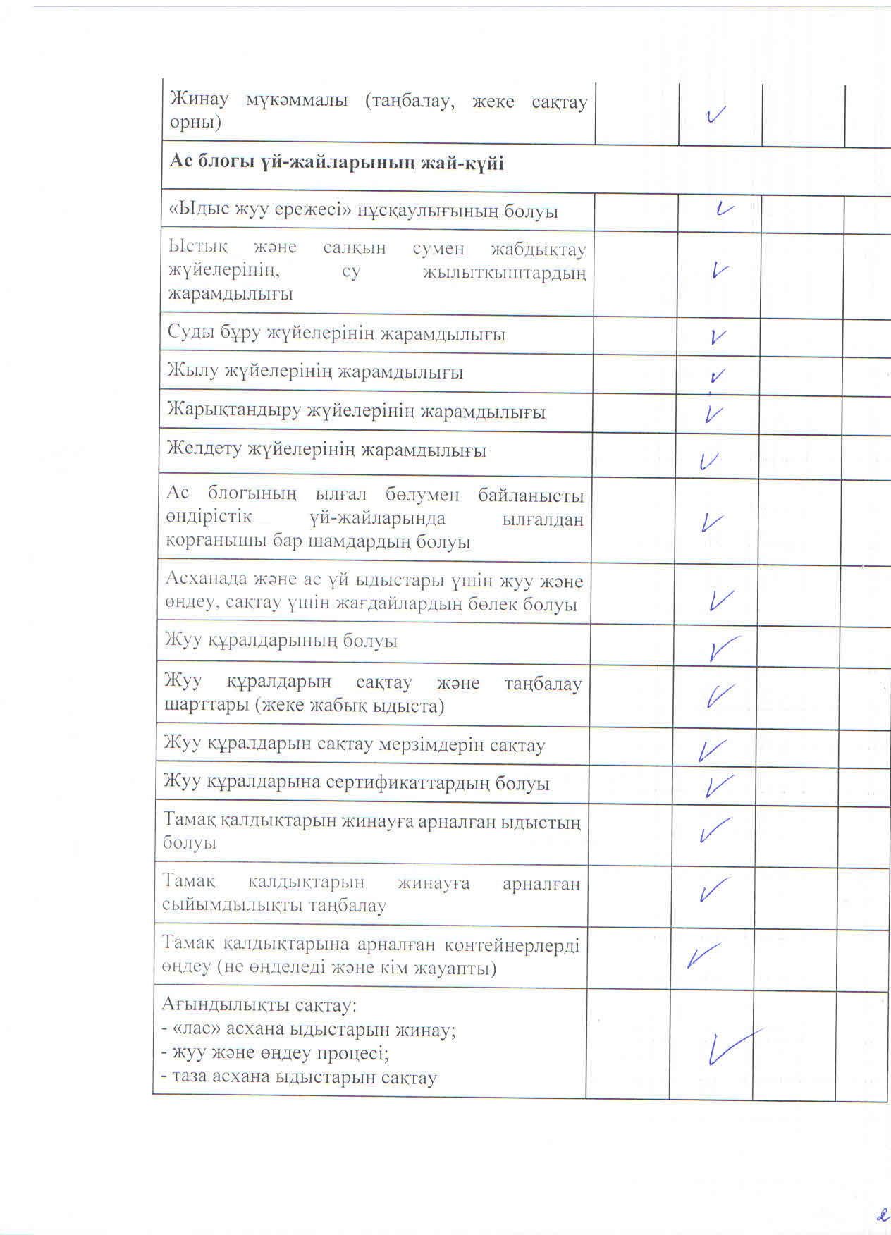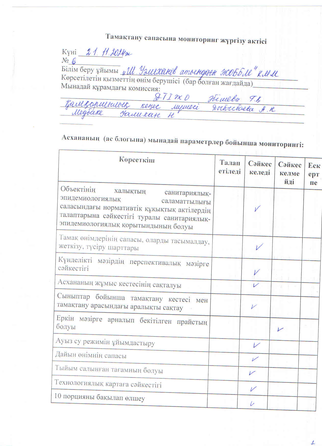 » Тамақтану сапасына мониторинг жүргізу актісі