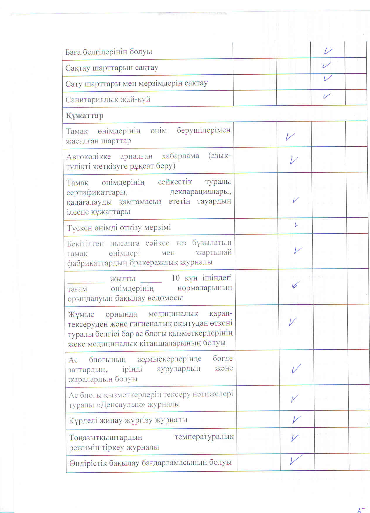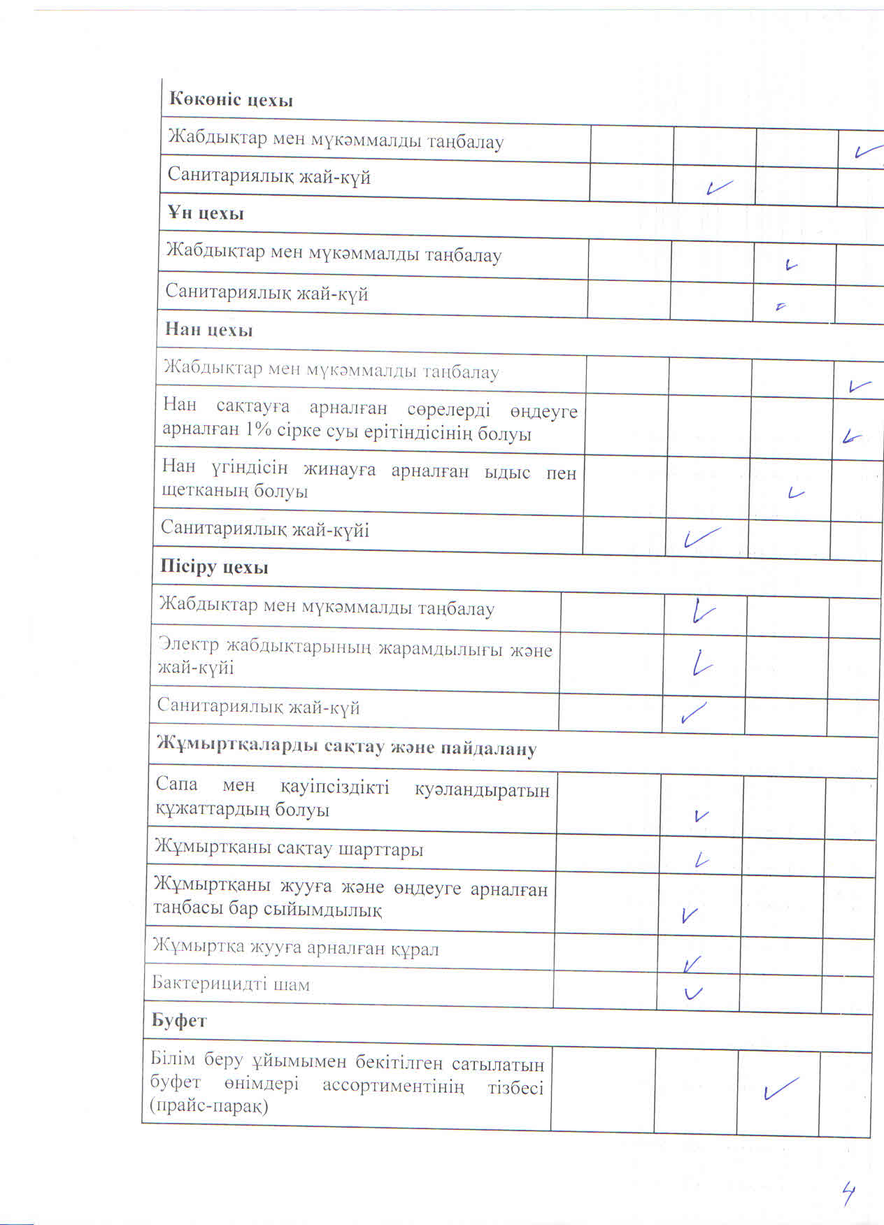 Тамақтану сапасына мониторинг жүргізу актісі