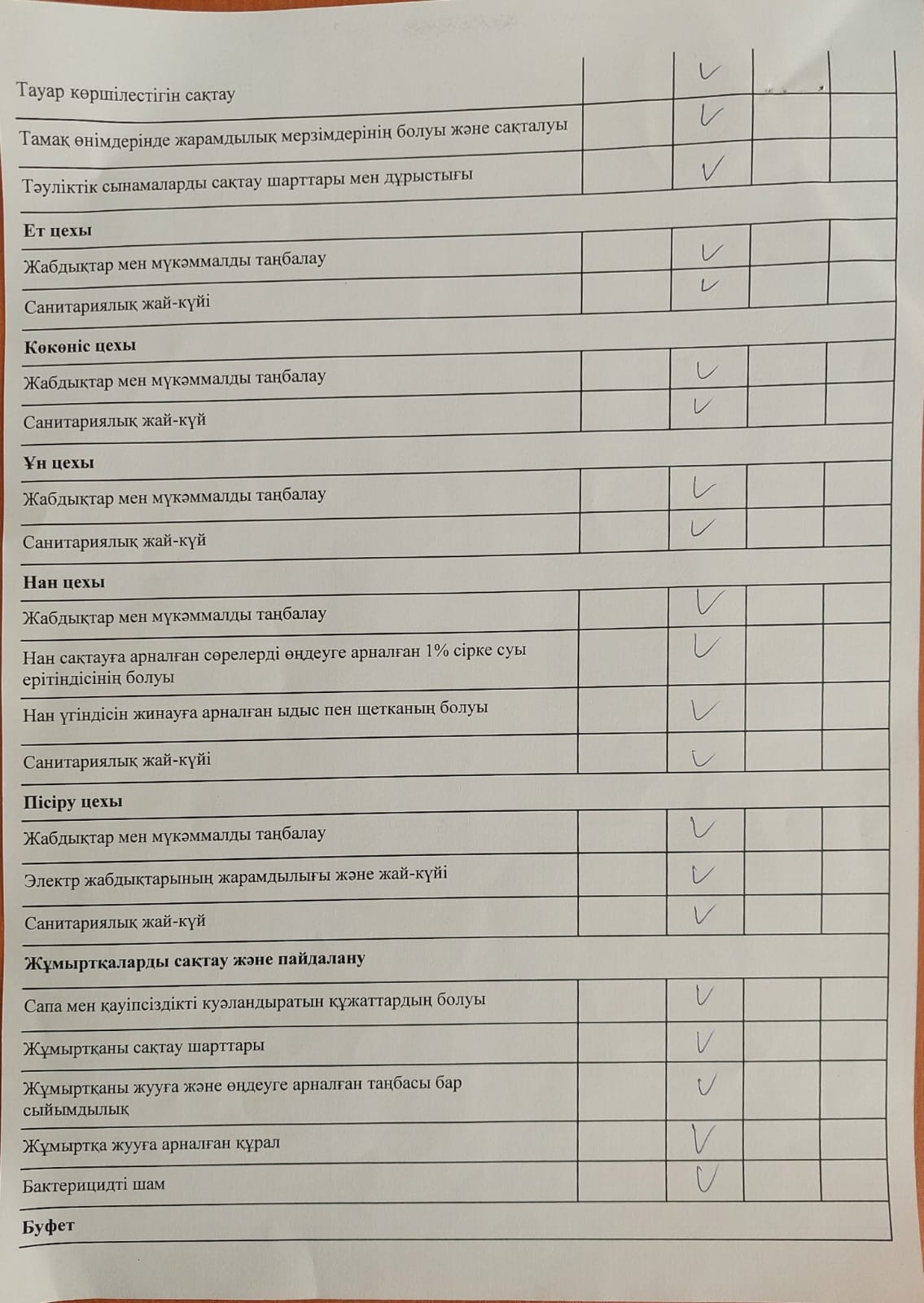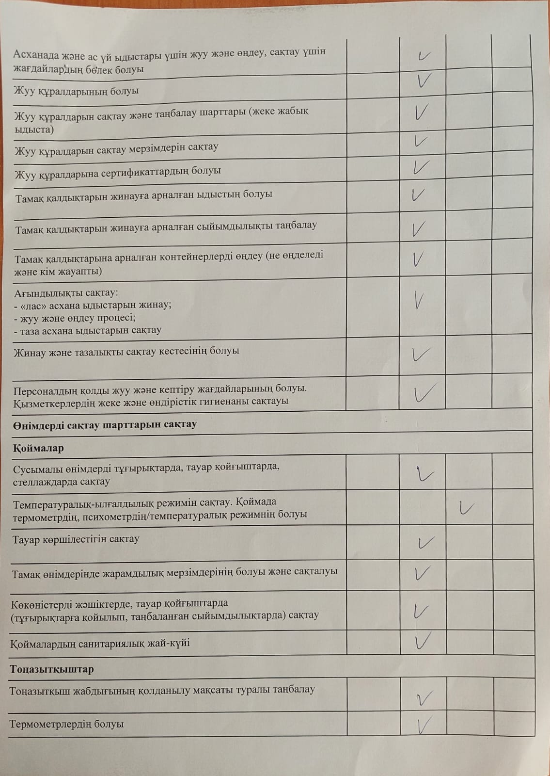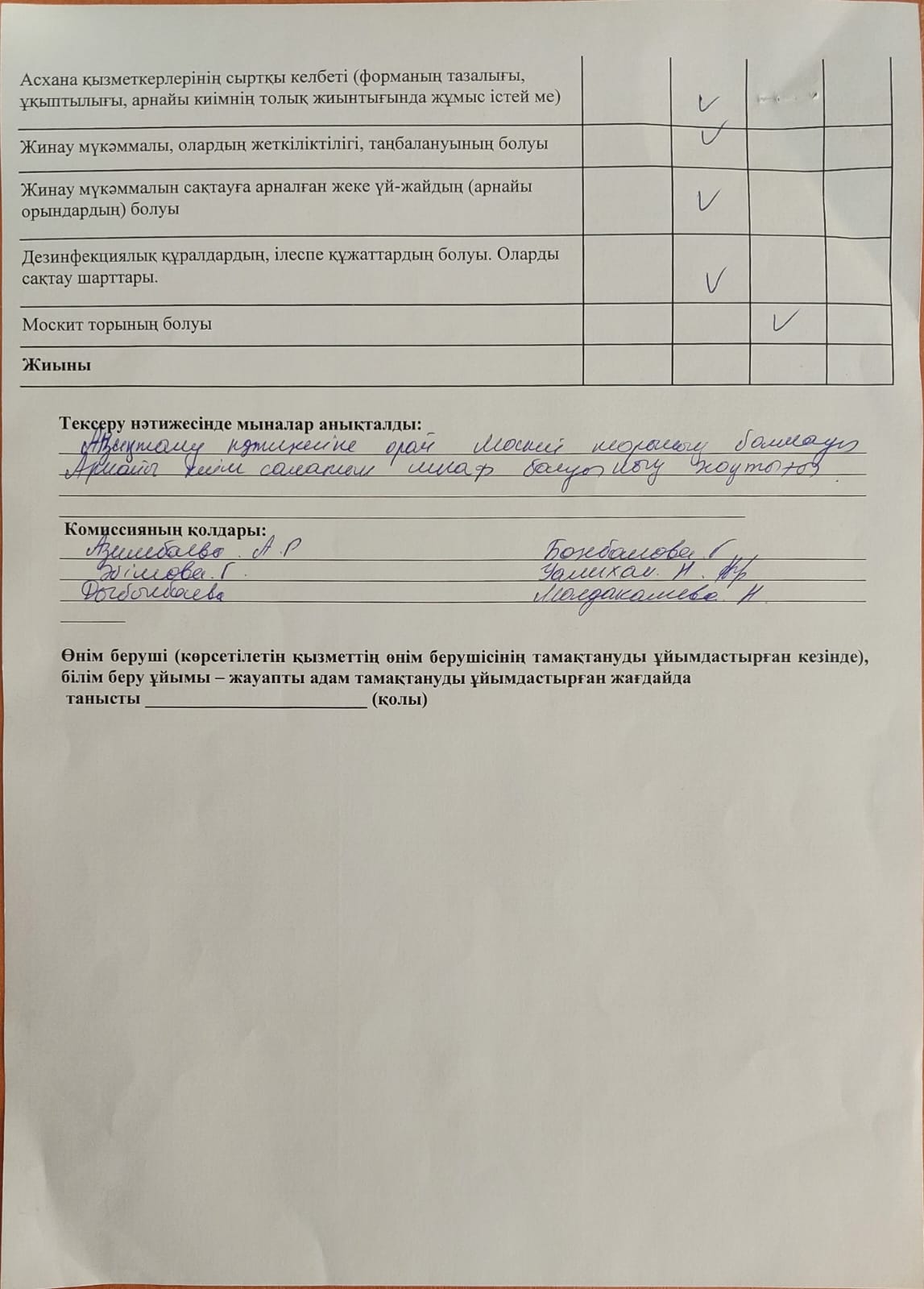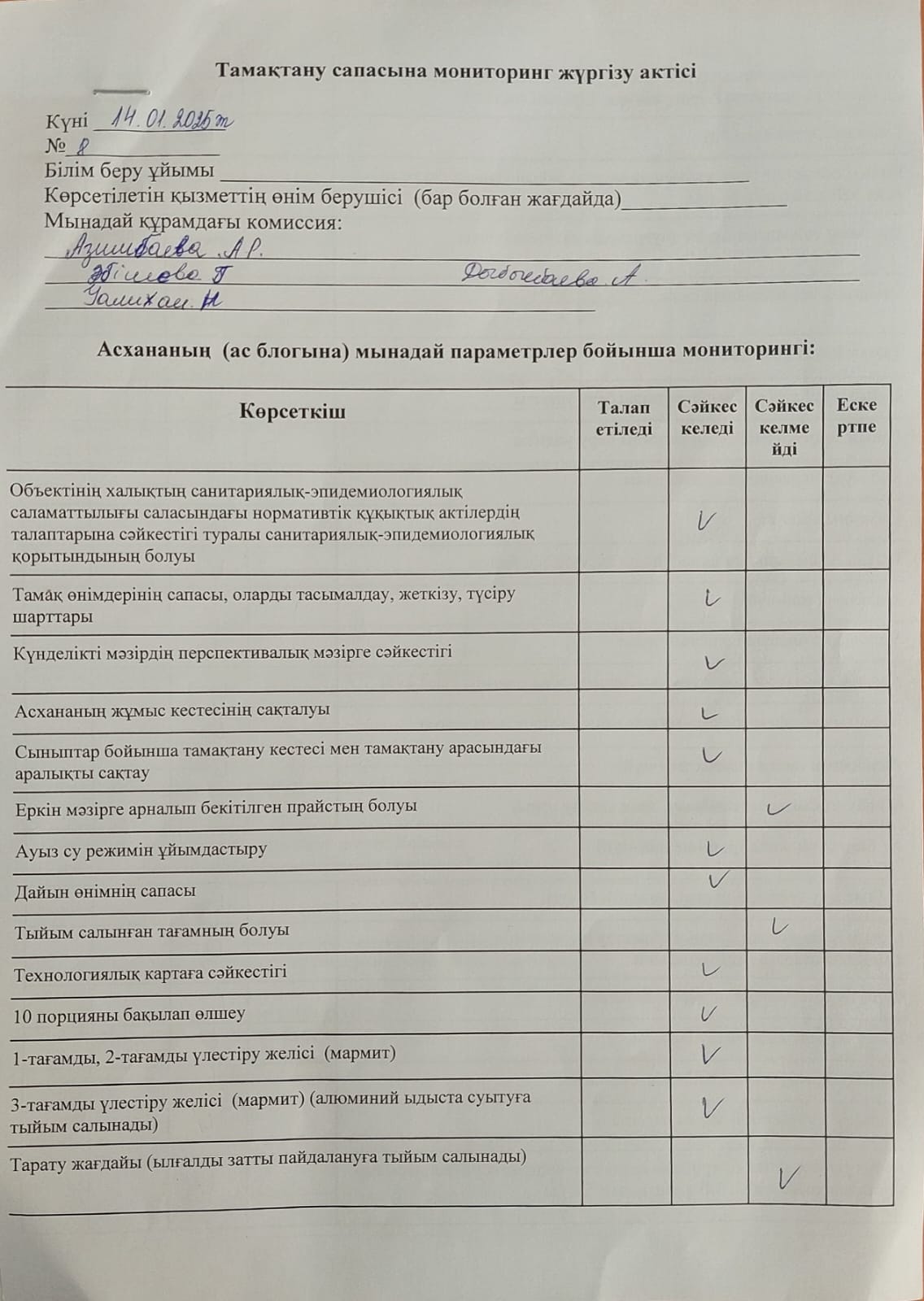 » Тамақтану сапасына мониторинг жүргізу актісі