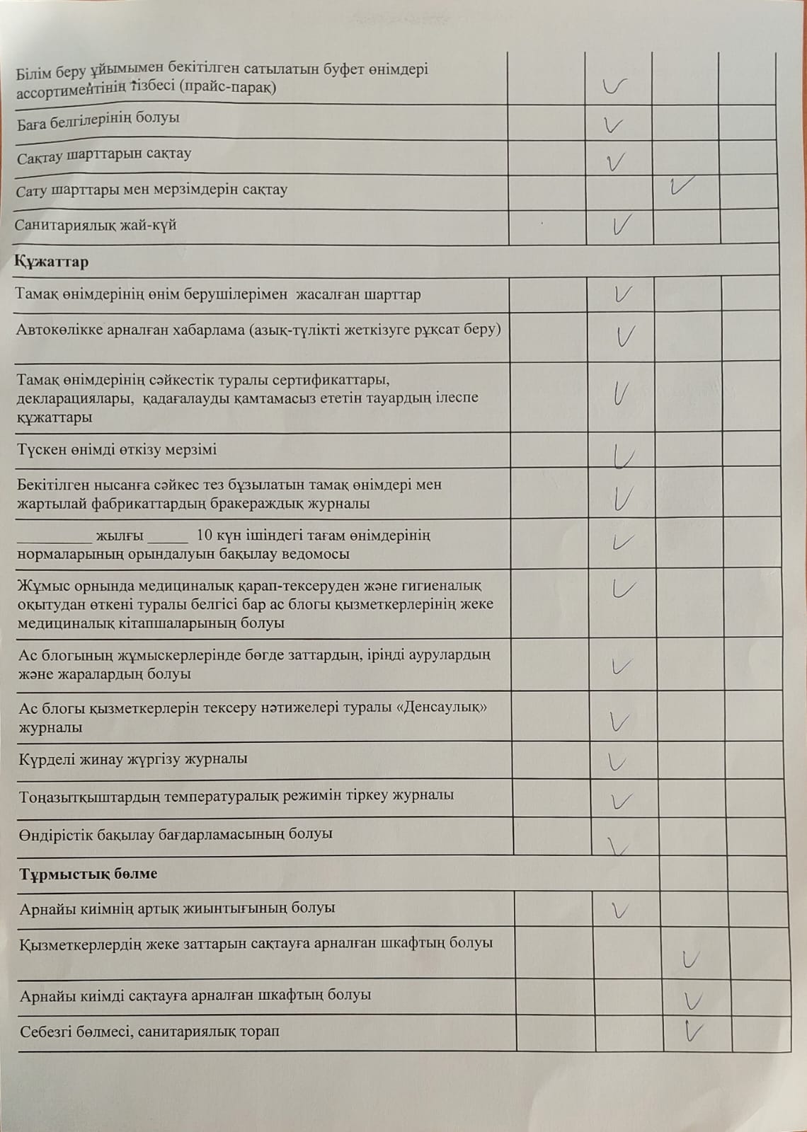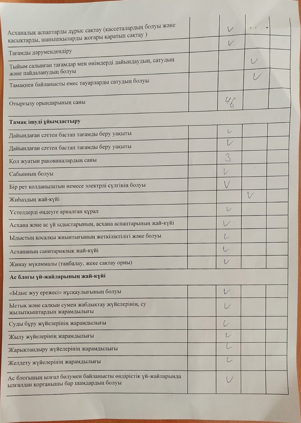 Тамақтану сапасына мониторинг жүргізу актісі