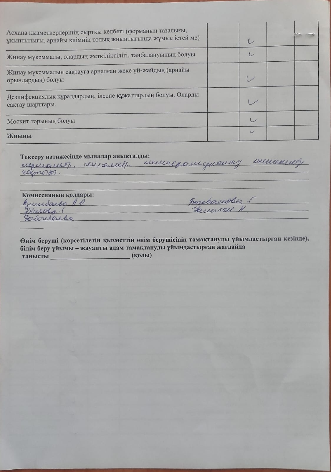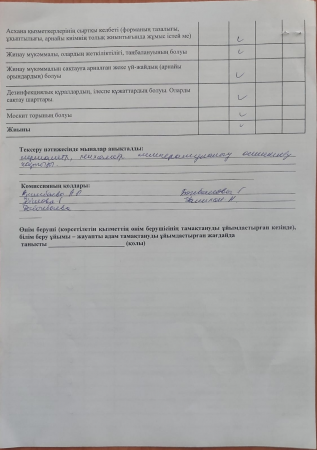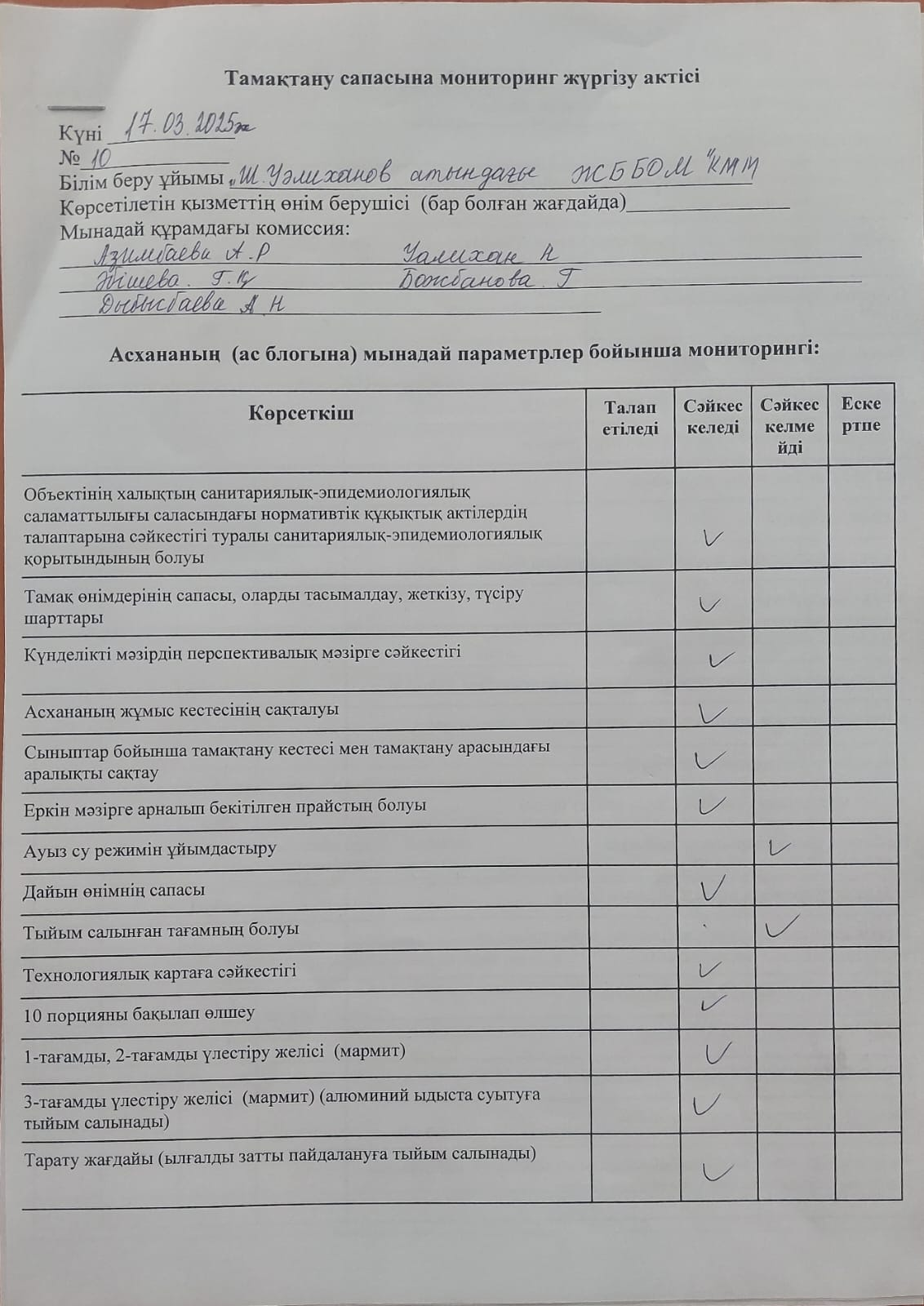 Тамақтану сапасына мониторинг жүргізу акт