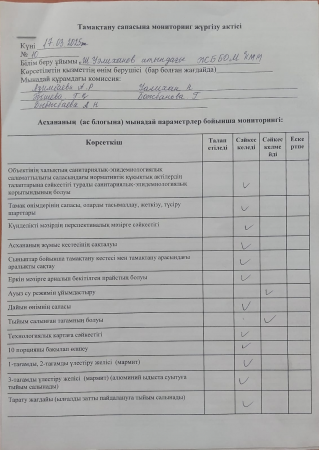 » Тамақтану сапасына мониторинг жүргізу акт