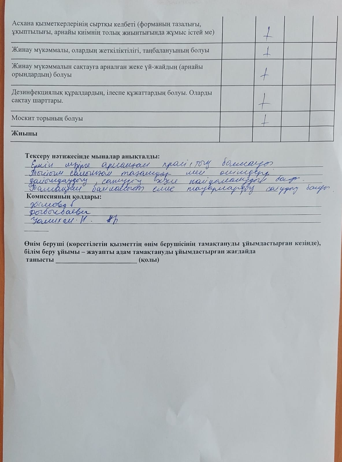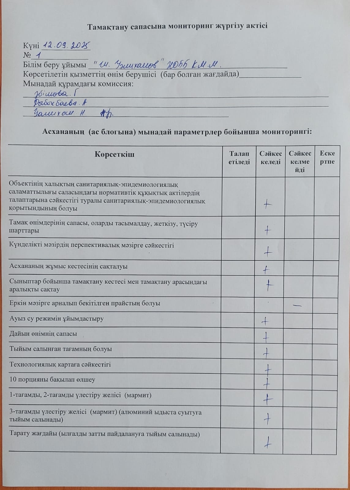 » Тамақтану сапасына мониторинг жүргізу актісі