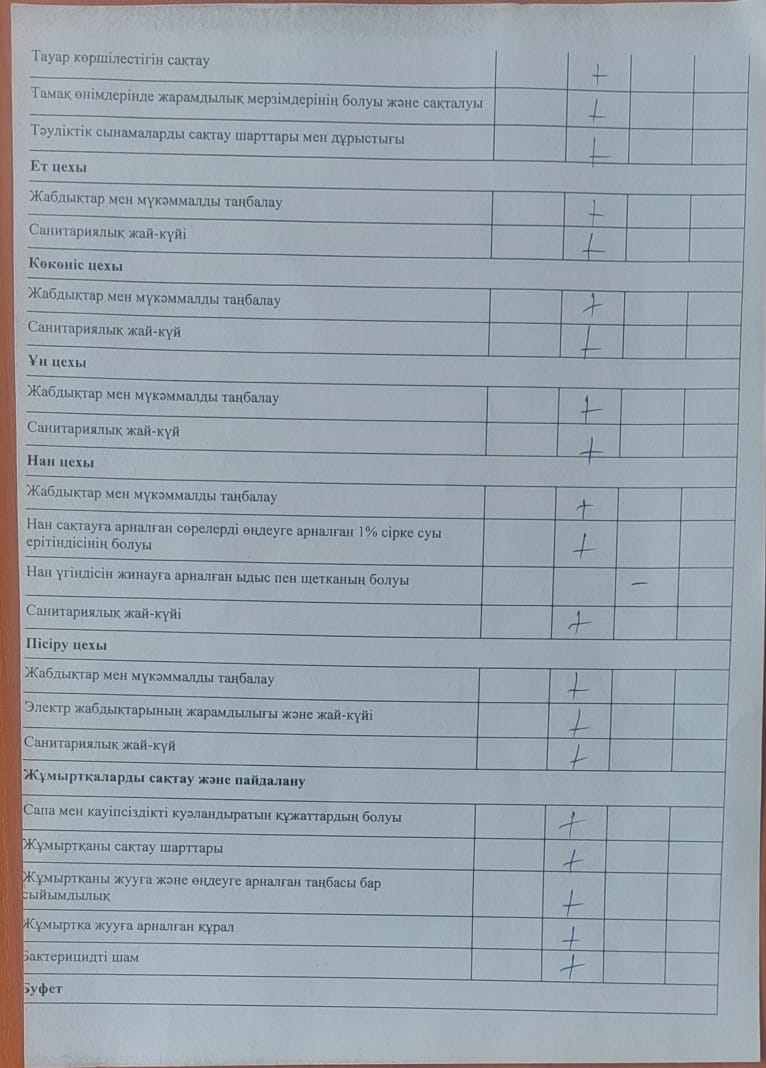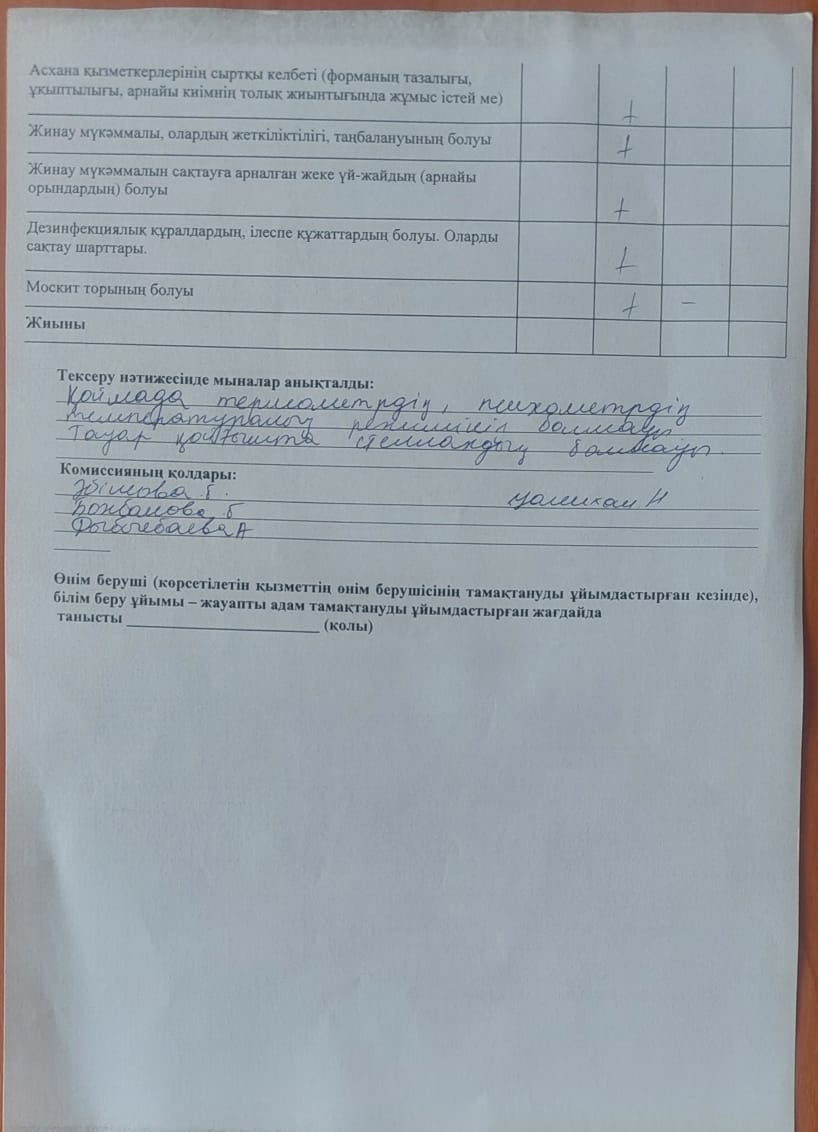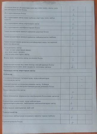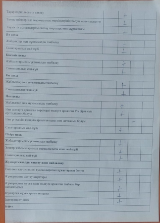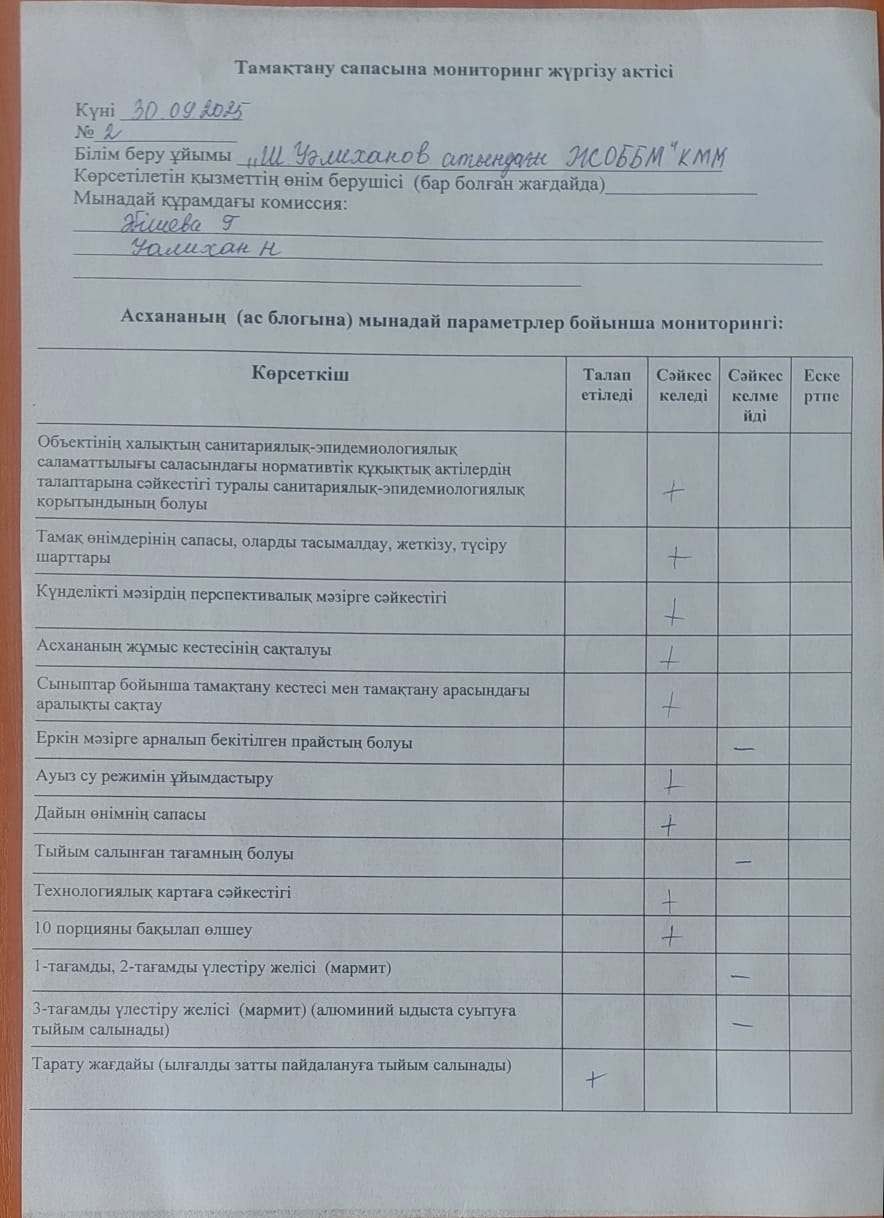 » Тамақтану сапасына мониторинг жүргізу актісі