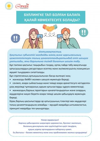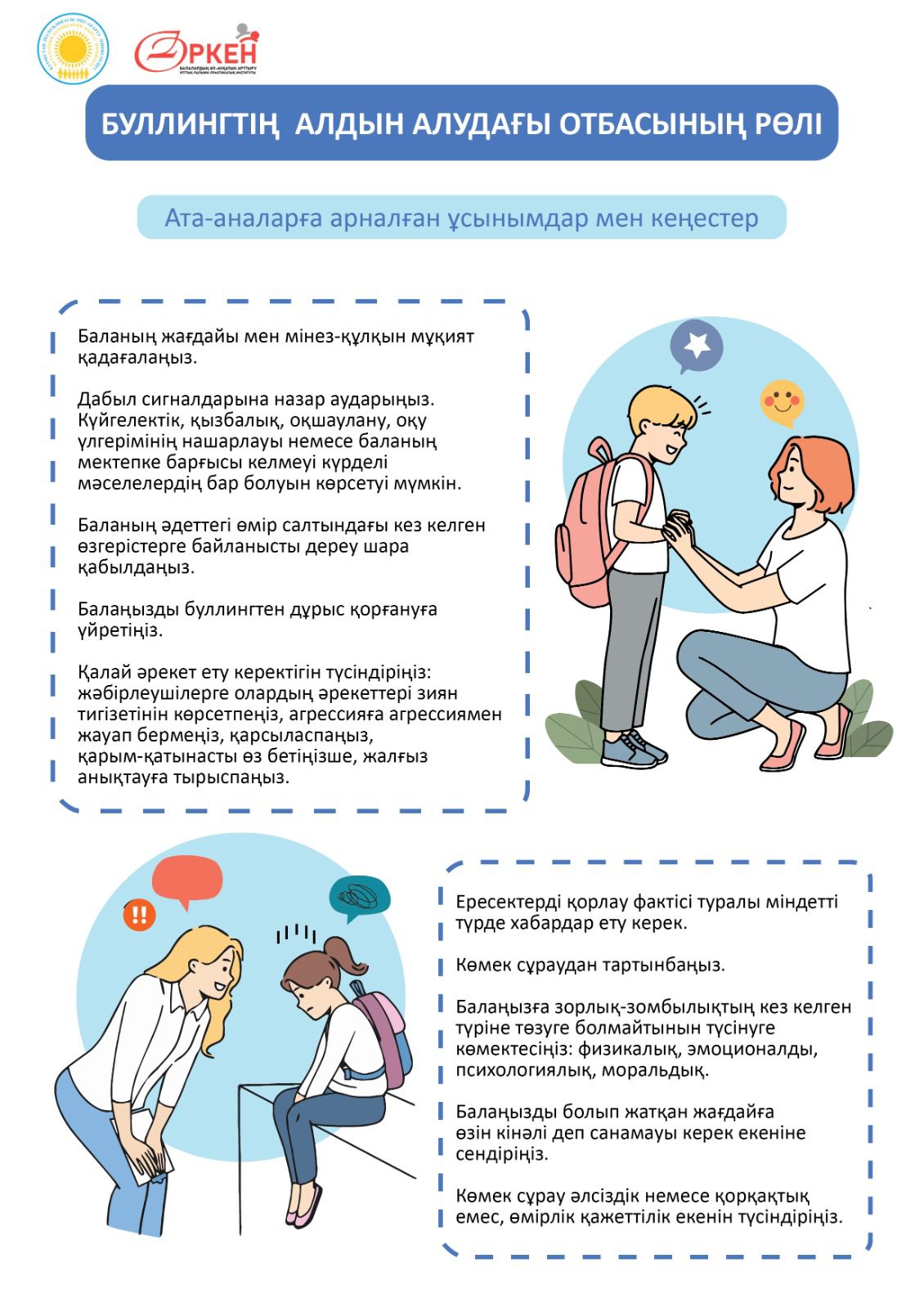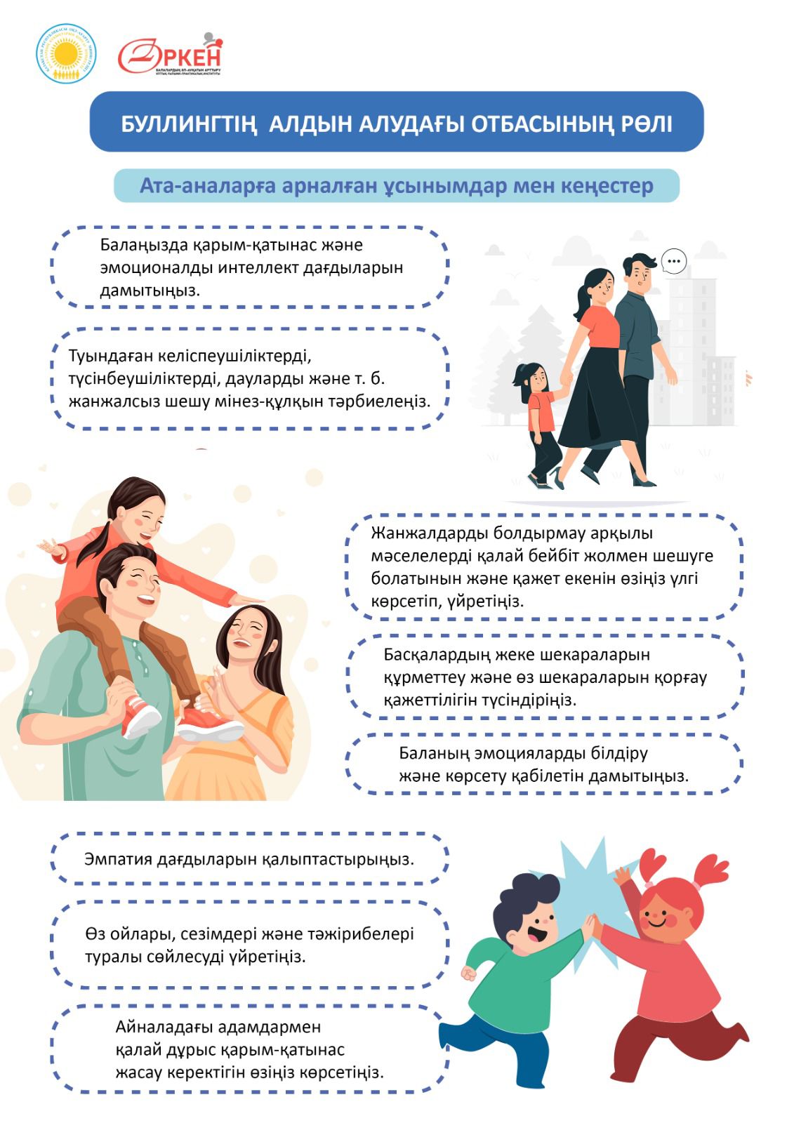 педагогтер және ата-аналарға "Буллингтің алдын алуға байланысты отбасының рөлі" тақырыбы бойынша ұсынымдар мен кеңестер берілді.