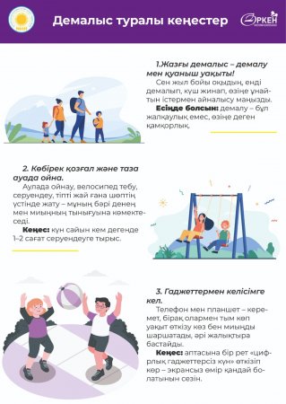 "Өркен" балалардың әлеуетін арттыру ұлттық ғылыми - практикалық институты "Демалыс туралы кеңестері" тақырыбында