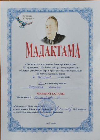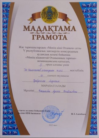 2022-2023 оқу жылында "Малахит" конкурсына мектебімізден 35% оқушылар қатысып мақтау қағаздарымен марапатталды.