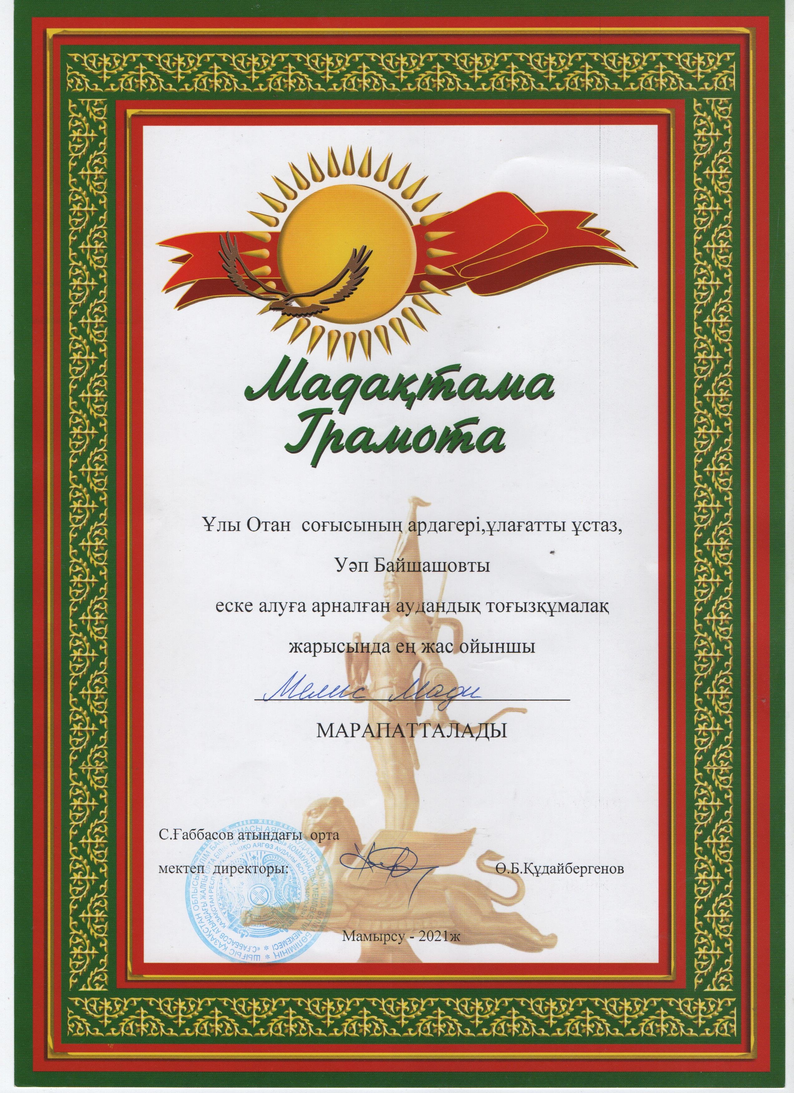 Абай облысы білім басқармасының Аягөз ауданы білім бөлімінің «Ш. Уәлиханов атындағы жалпы орта білім беретін мектебі»