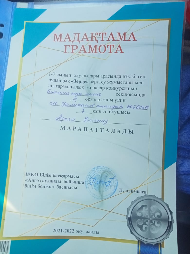 Абай облысы білім басқармасының Аягөз ауданы білім бөлімінің «Ш. Уәлиханов атындағы жалпы орта білім беретін мектебі»